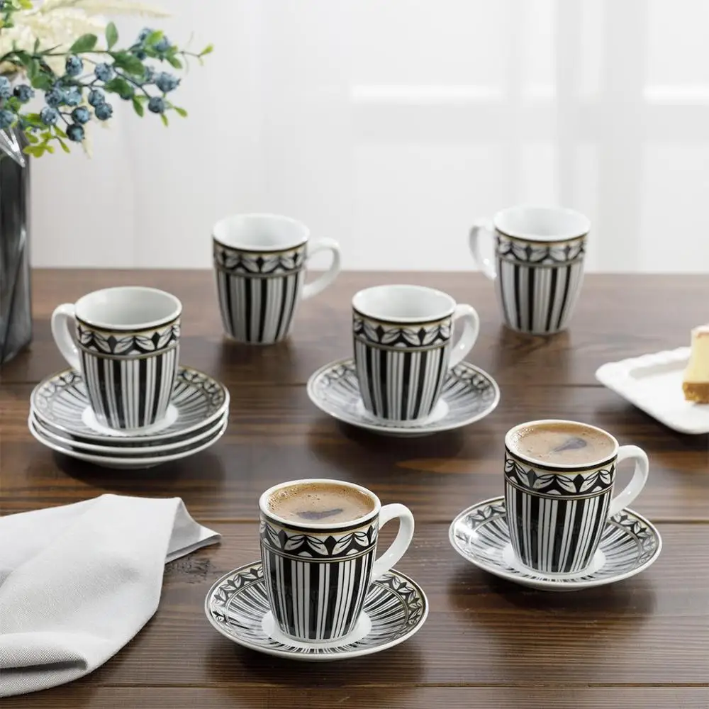 6 человек 12 шт узорчатые чашки фарфоровые турецкие кофейные черные коричневые блюдца креативные Кружки coaster белая керамическая чашка для чая Новинка Бесплатная доставка