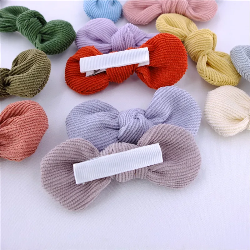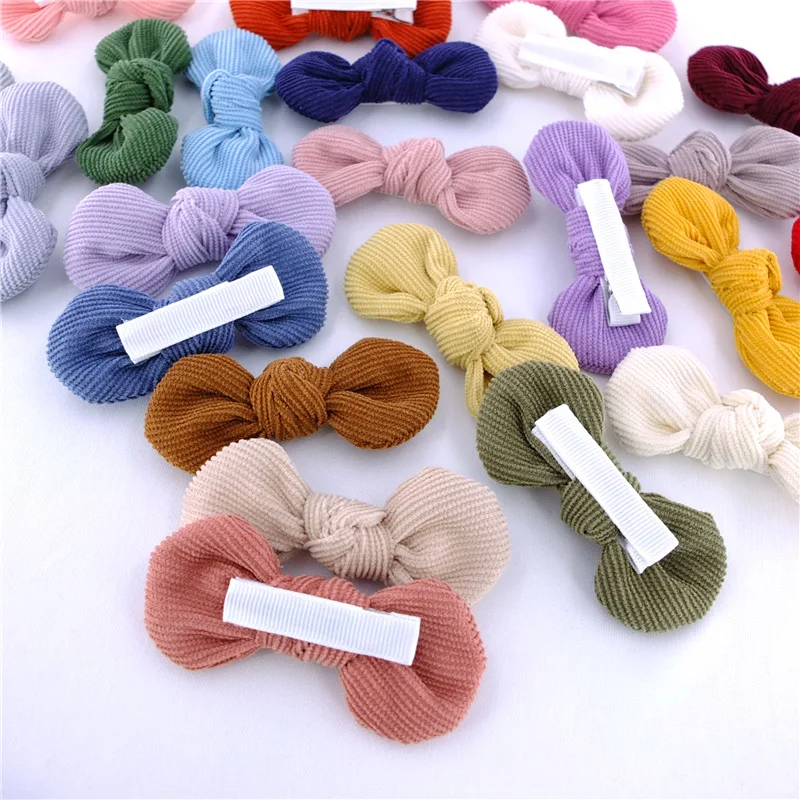 24 шт.лот 2021 Новинка 3,2 "Вельветовая бант из нейлона повязка на голову или заколки для волос Детские бант для волос для девочек реквизит для новорожденных хлопок заколка-бабочка