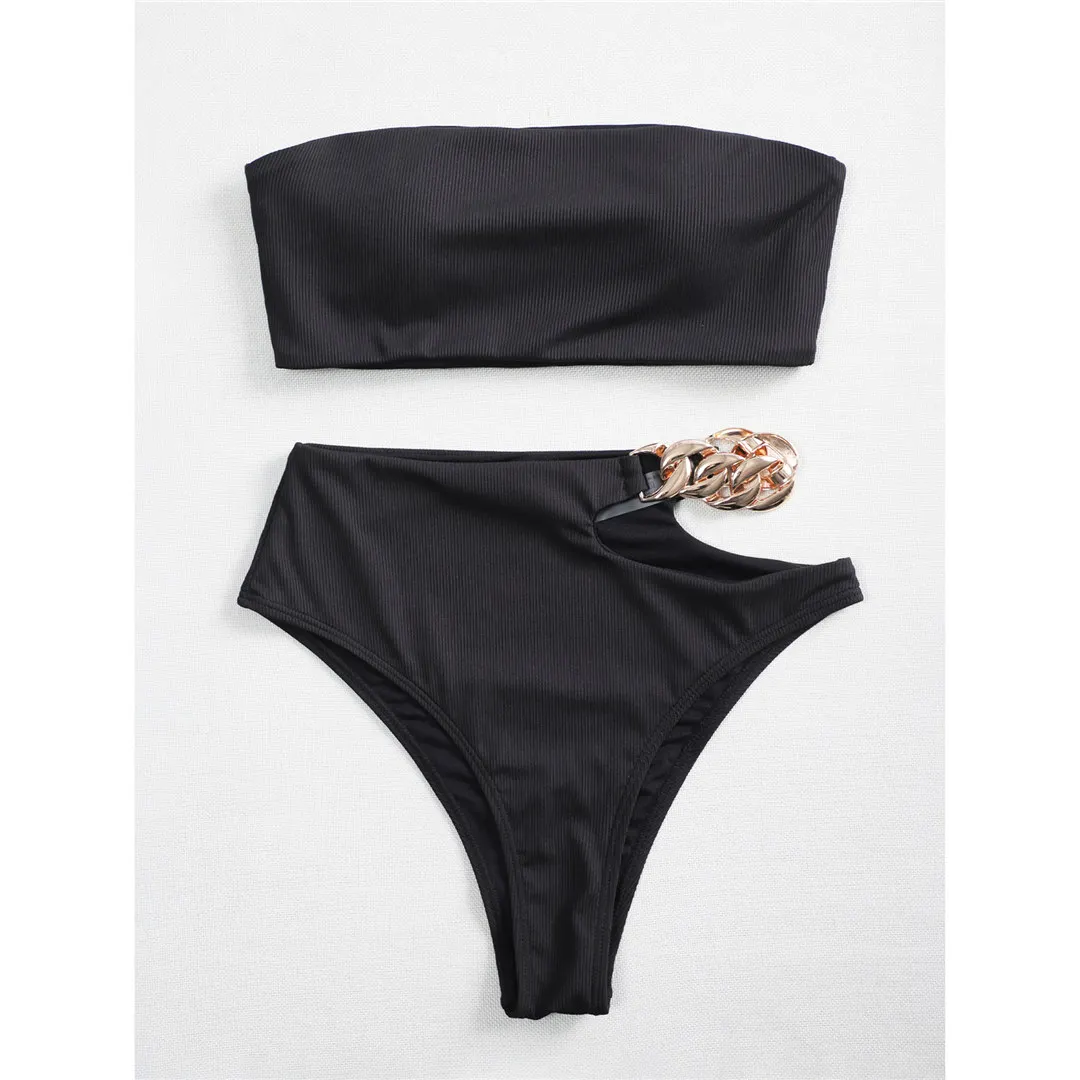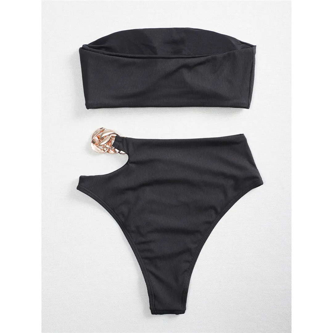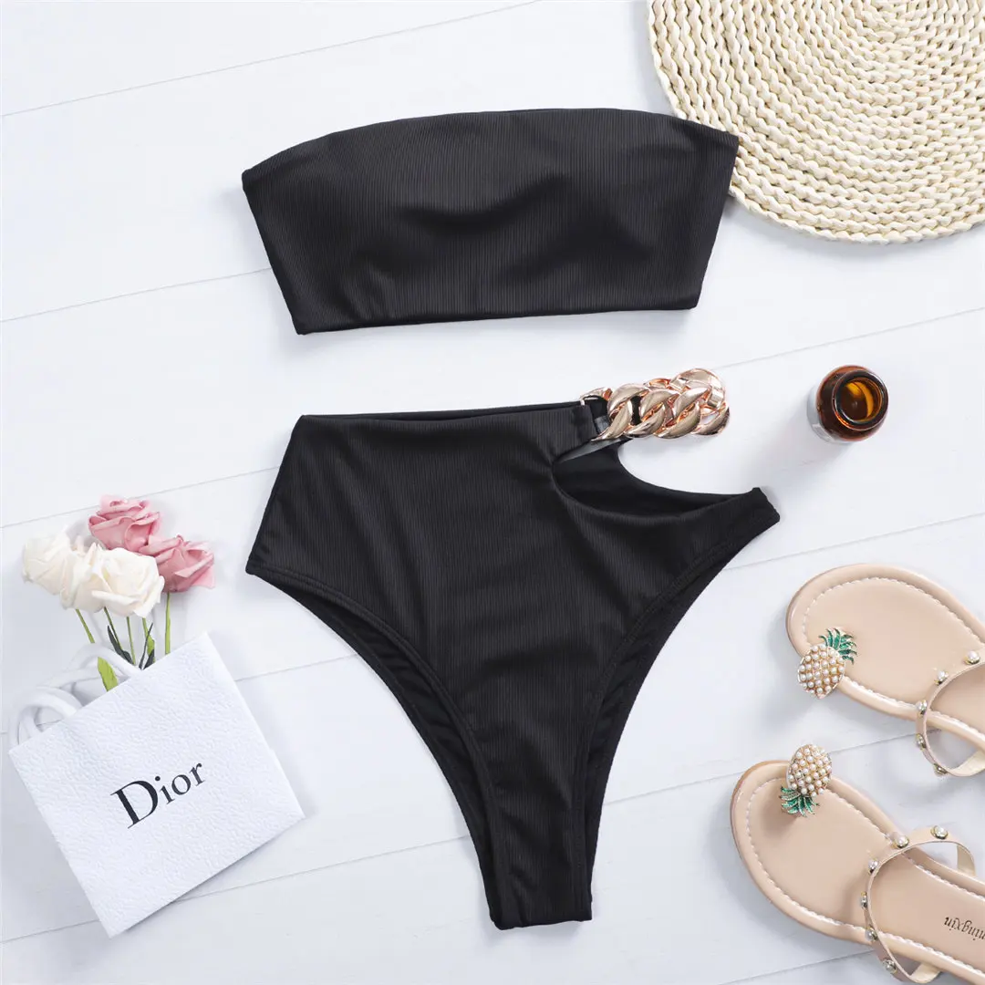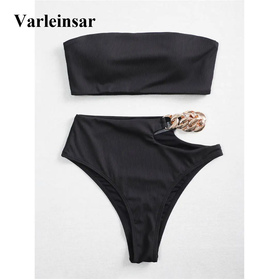 S-xl бандо с высокой талией женский купальник бикини женский купальник комплект бикини из двух предметов Асимметричный купальный костюм V2640B