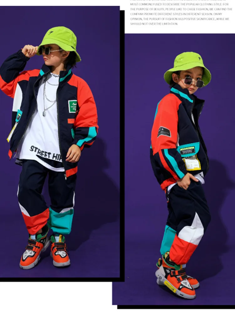 Модная детская одежда в стиле хип-хоп; Топ; Пуловер с карманами; Повседневные штаны для бега для девочек и мальчиков; Костюм для джаза и танцев; Одежда