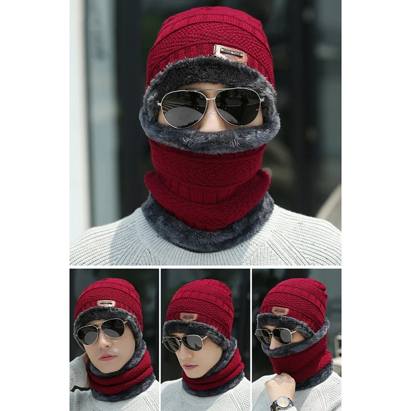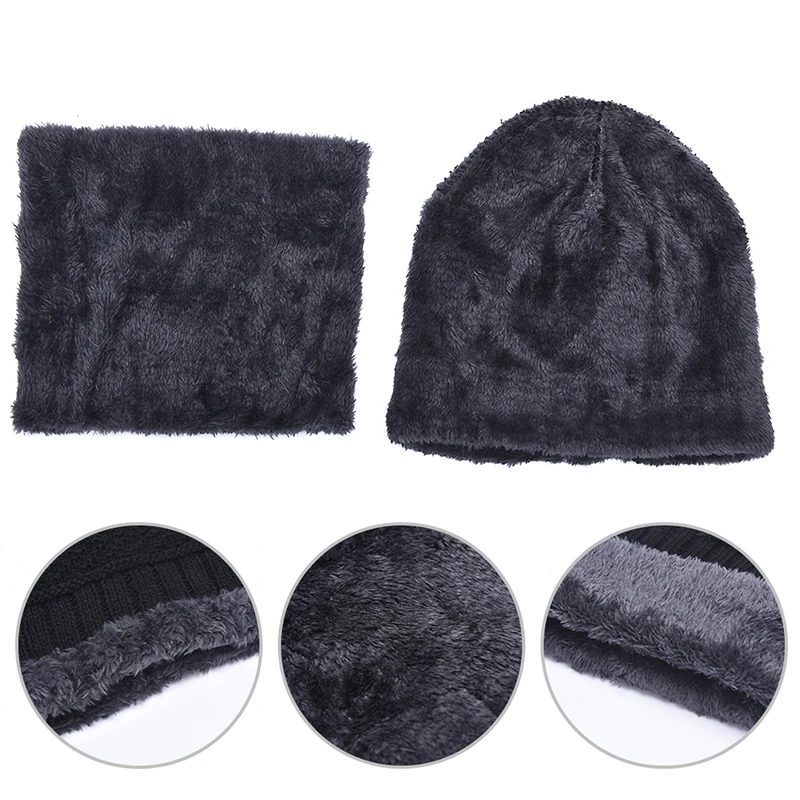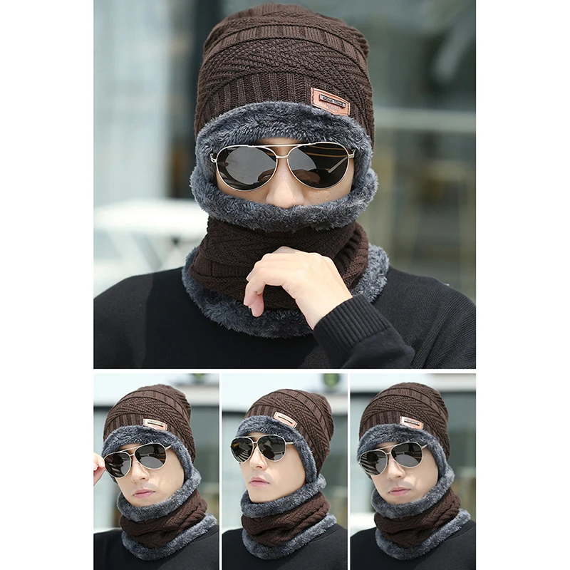 Шапка и шарф мужские, зимние, теплые, ветрозащитные, вязаные