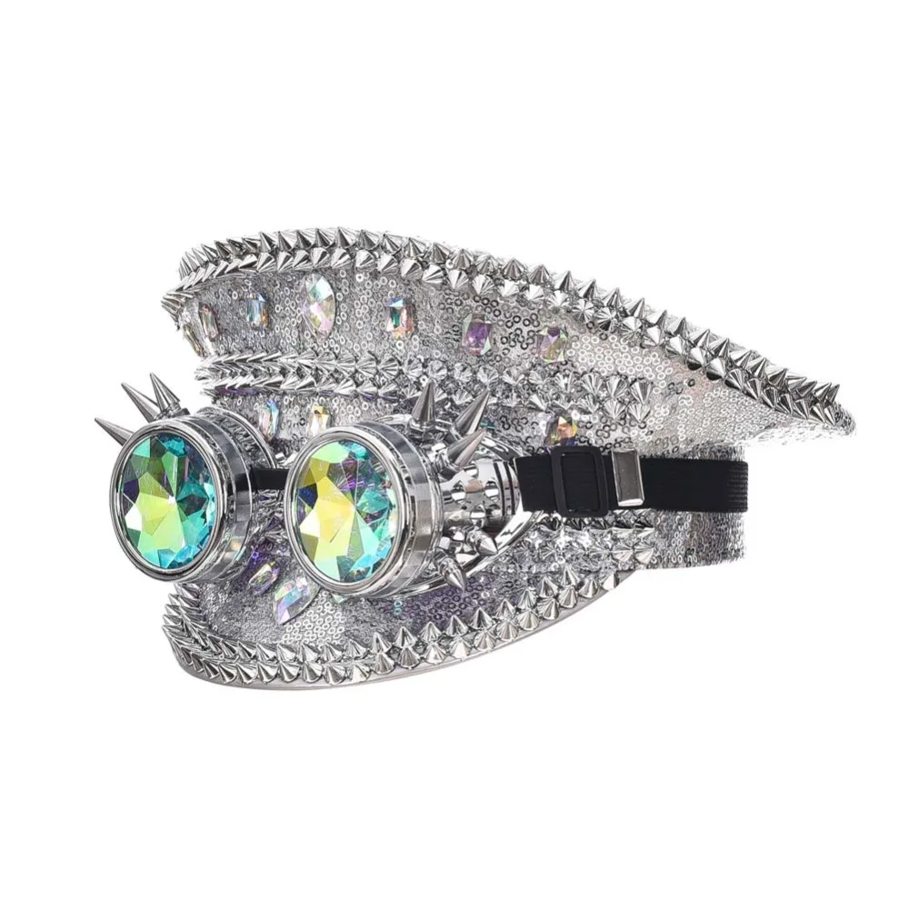 Для взрослых с серебряными пайетками вечерние туфли с заклепками в стиле Алмаз очки стимпанк шапка аксессуары в готическом стиле Show для ночных клубов одежда рейв рок Косплэй реквизит