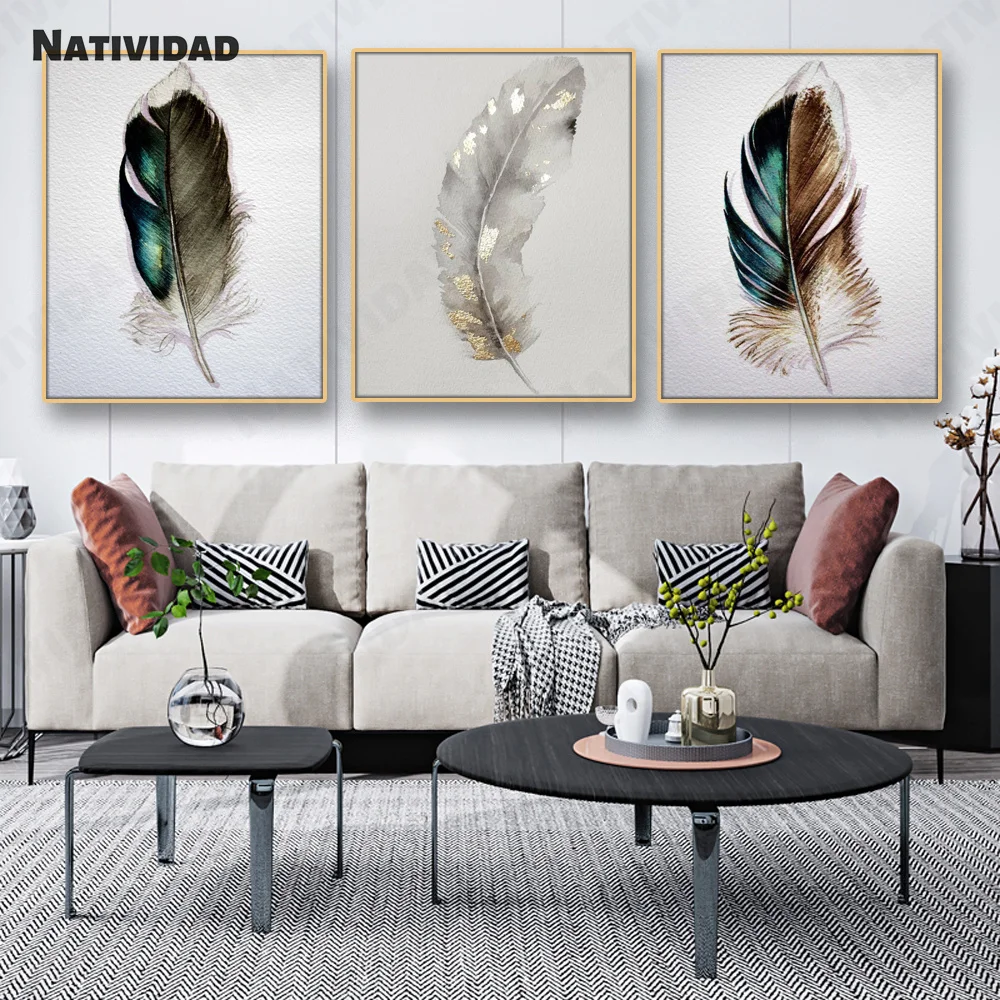 Картина на холсте с серебряными перьями, художественный Декор для гостиной, плакаты и печать, Современное украшение для дома, настенные картины
