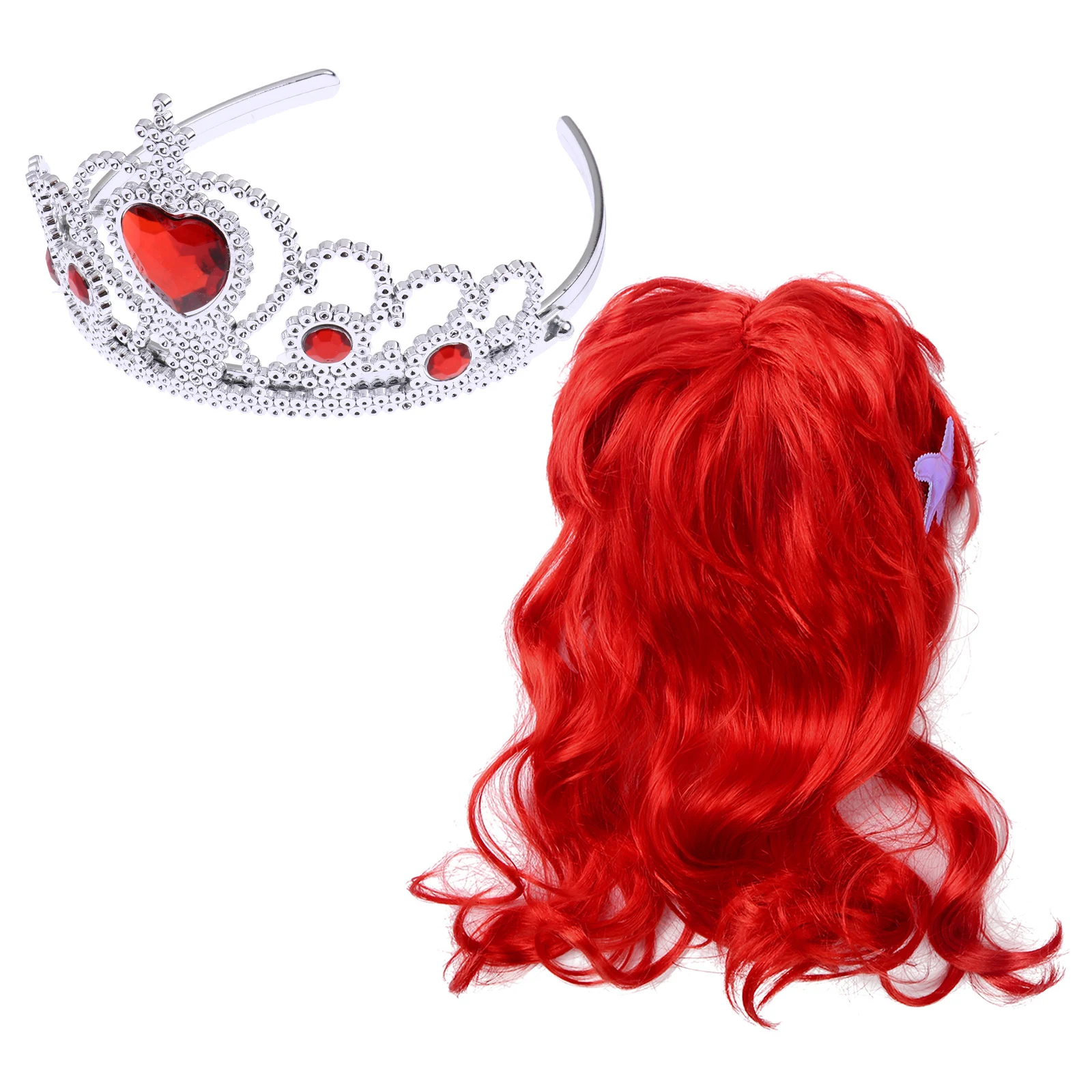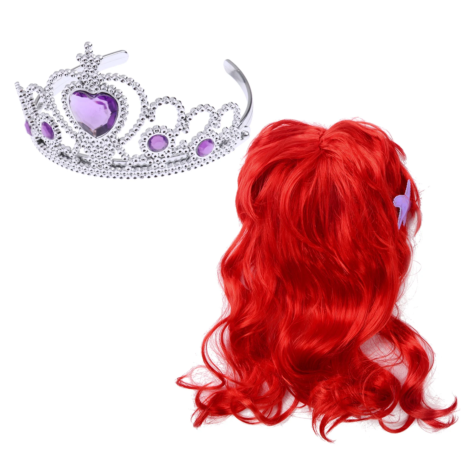 Красный детский наряд принцессы русалки для девочек, парики из синтетических волос с заколкой для волос Starfsh, головной убор для Хэллоуина, карнавальный костюм, аксессуары