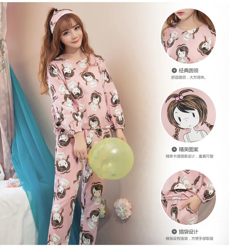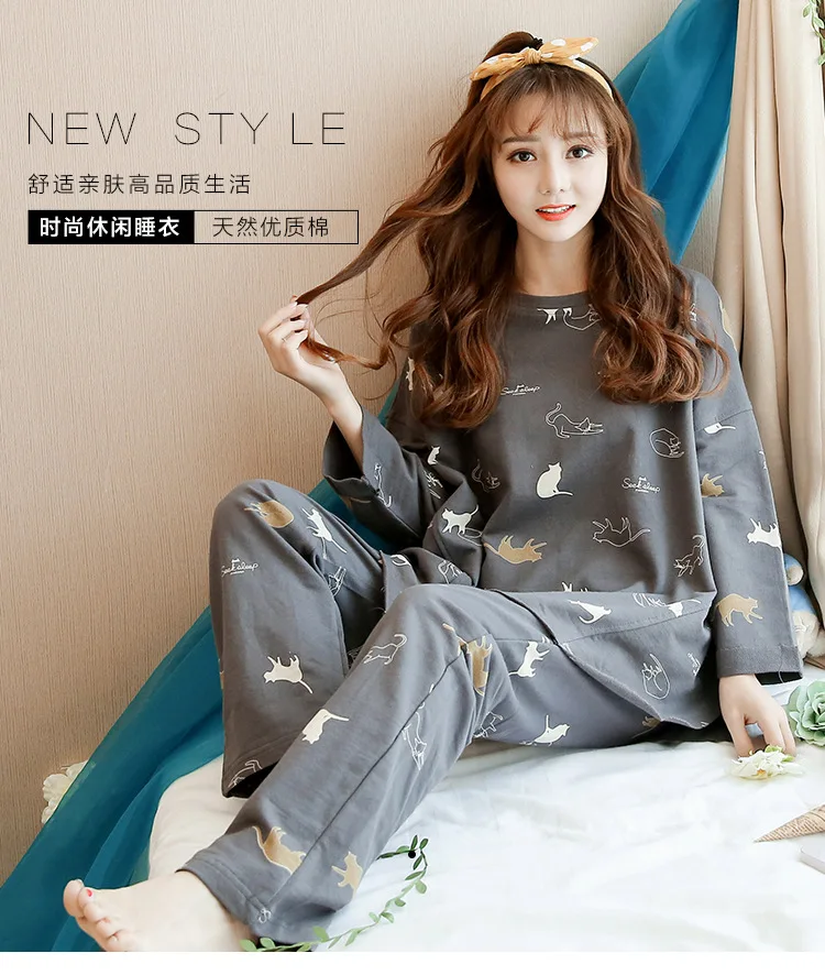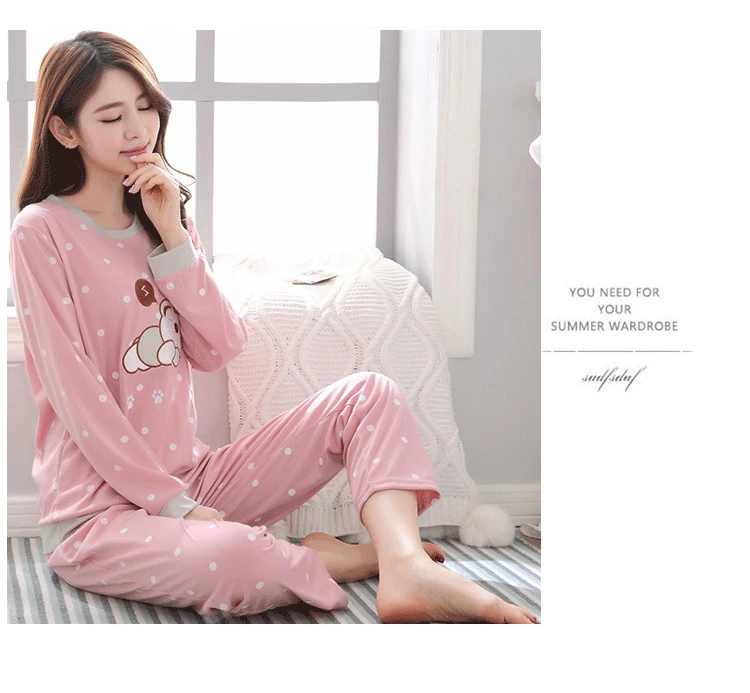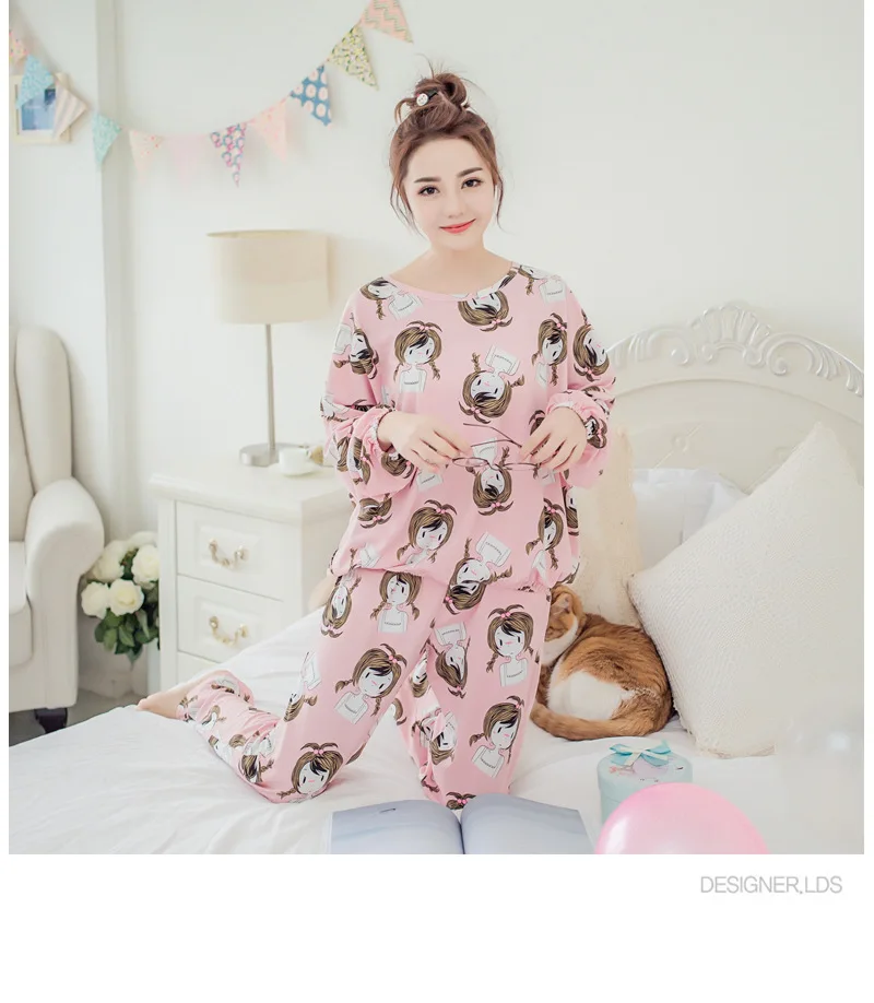 Пижамный комплект женский с длинным рукавом, одежда для сна в мультяшном стиле, милая домашняя одежда для девочек, подарок для женщин, одежда для сна, весна-осень