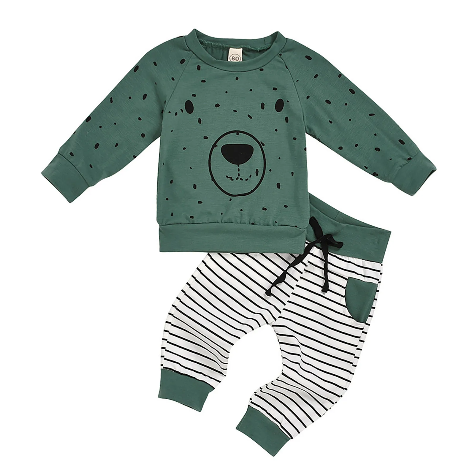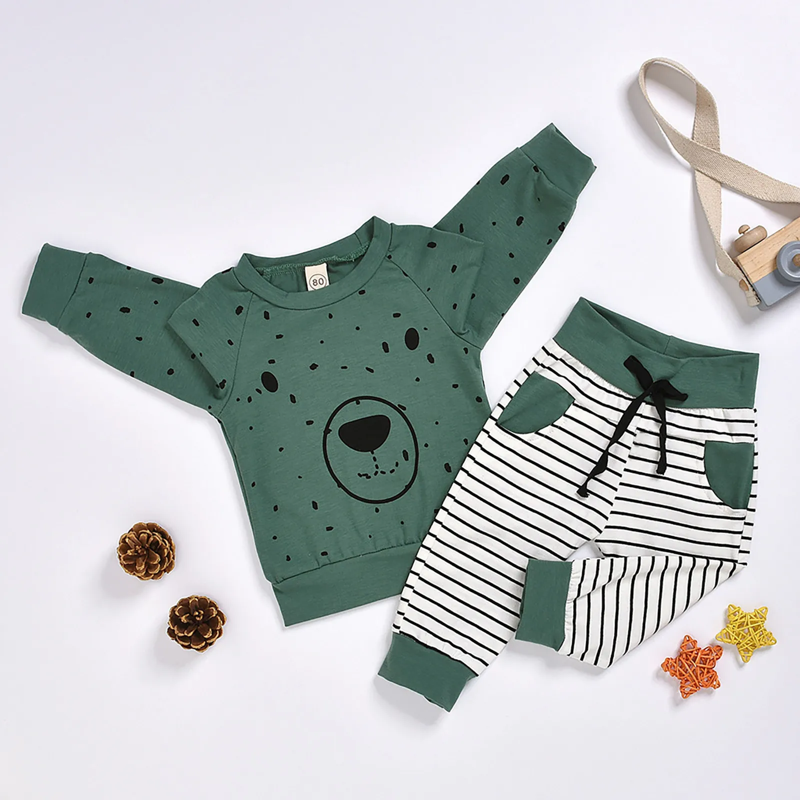 2021 комплект одежды для маленьких мальчиков, толстовка с капюшоном и мультяшным медведем, топы с длинными рукавами + штаны, комплект детской одежды