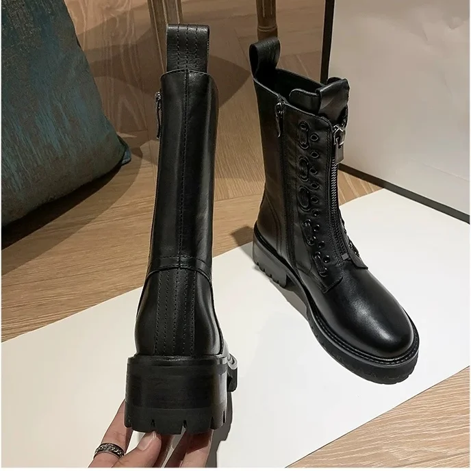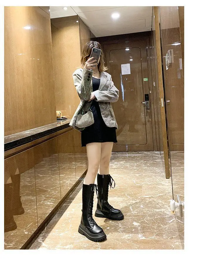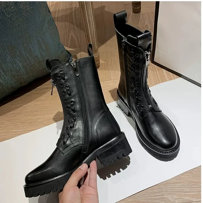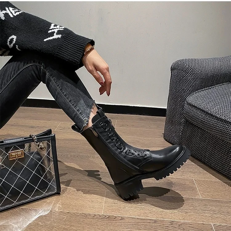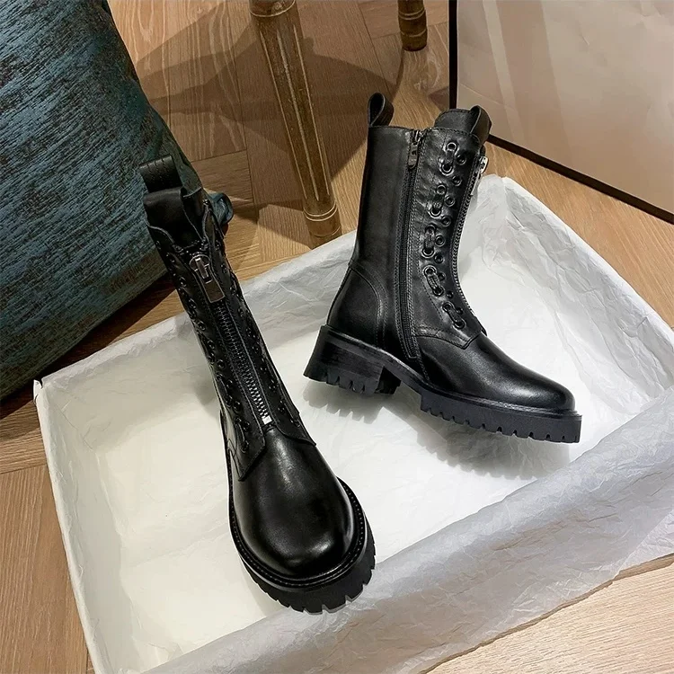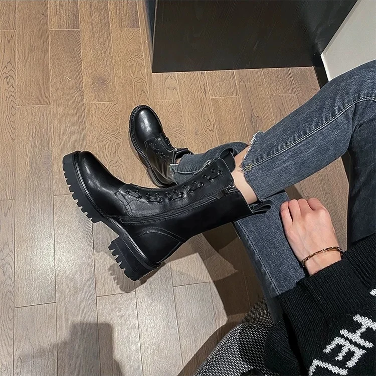 Женские ботинки на толстой подошве, полуботинки-мартинсы средней длины, Размеры 35-40, 2021