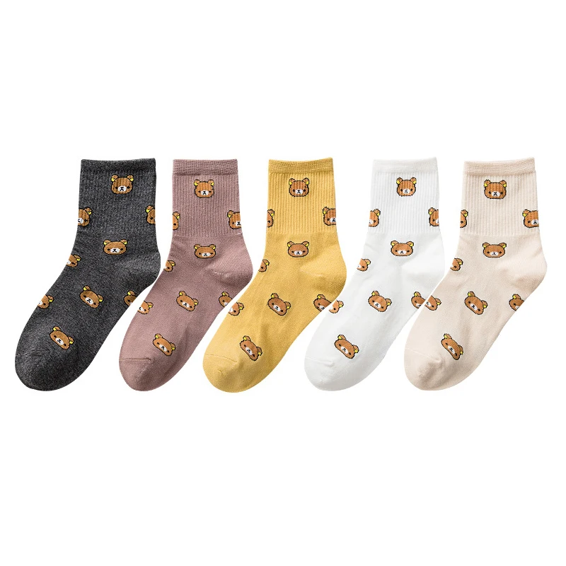 Модные носки с медведем, женские носки из чистого хлопка пяти цвето...