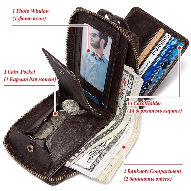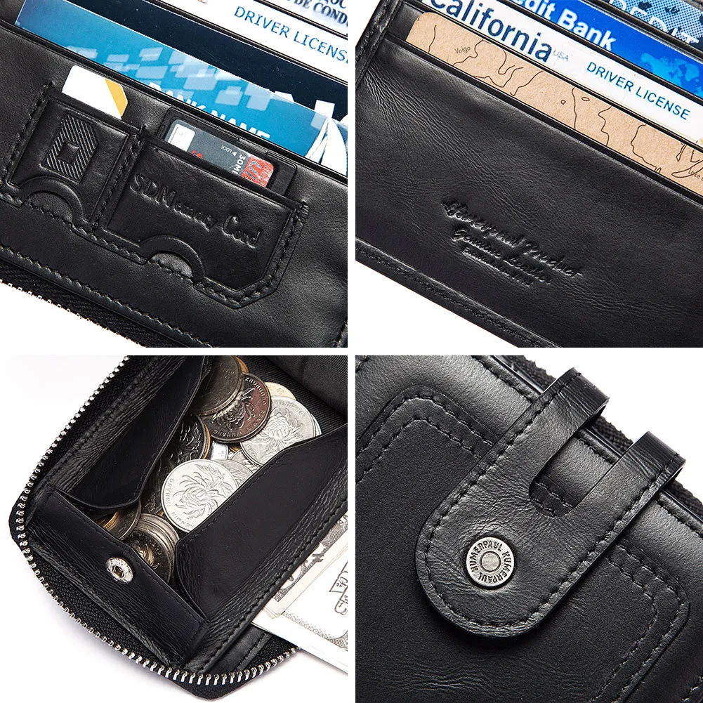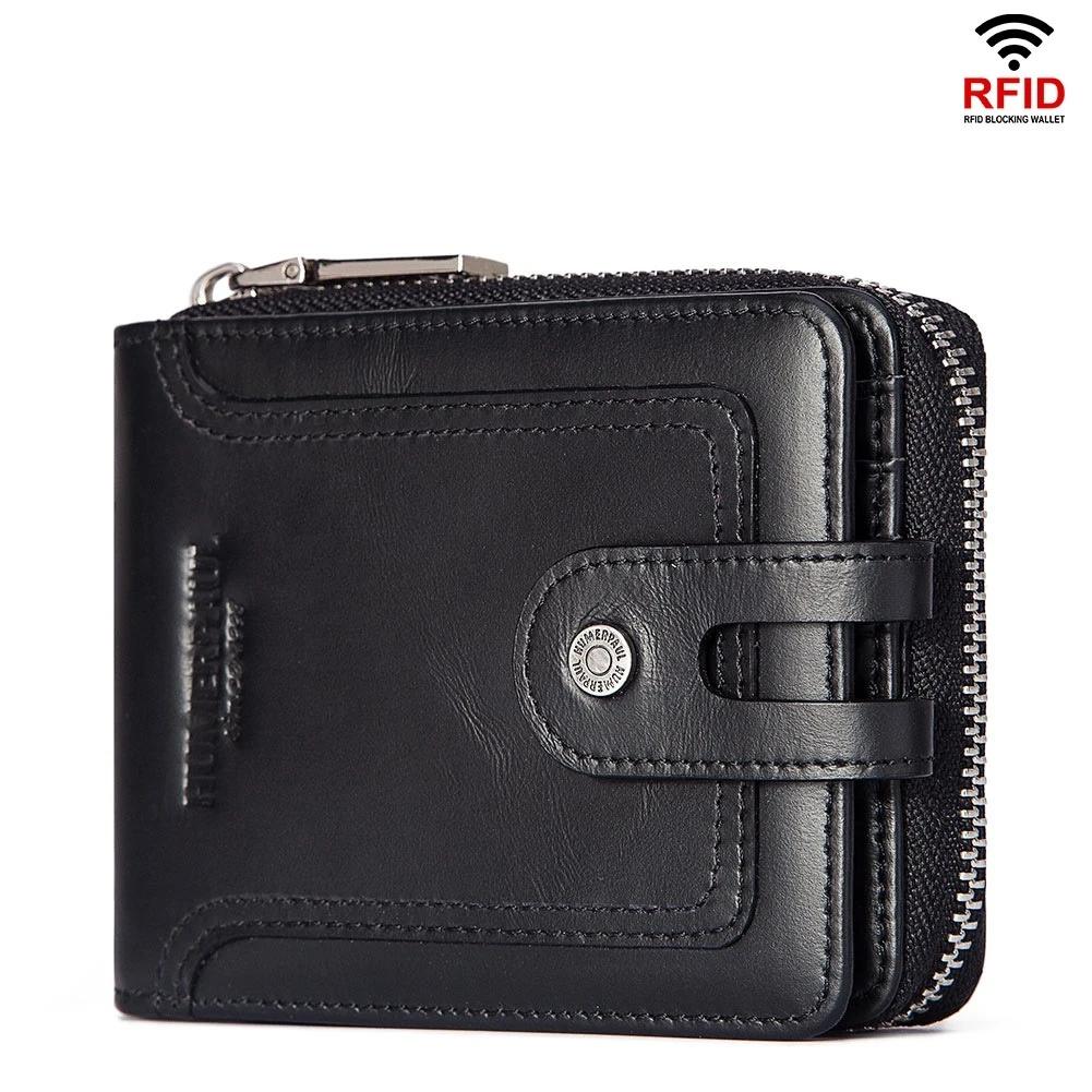 Короткий кошелек из натуральной воловьей кожи для мужчин, маленький мужской бумажник с RFID-блокировкой, кредитница с кармашком для мелочи, кошелек на молнии