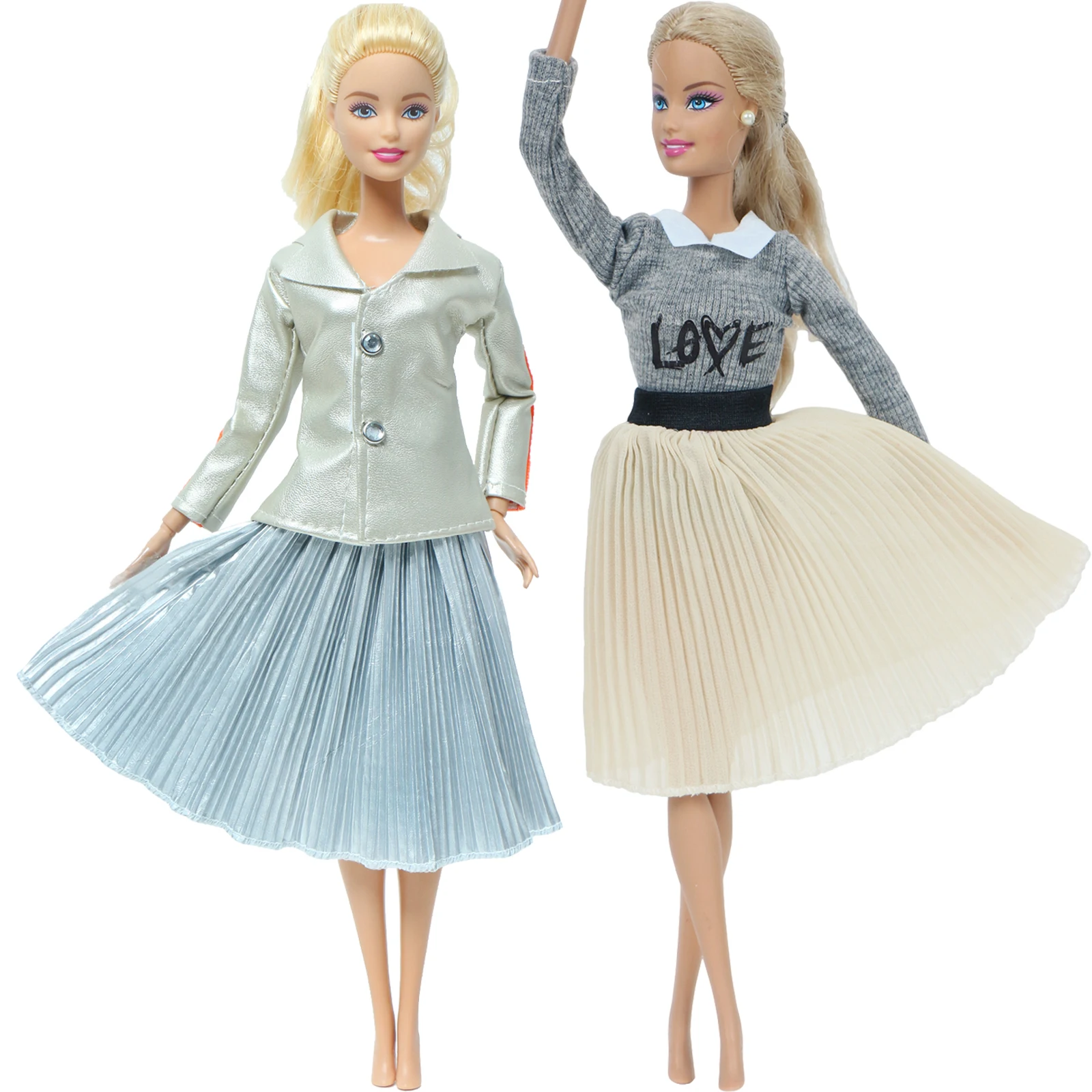 4 шт.компл. высококачественный наряд для куклы 2 рубашки пальто + 2 плиссированные юбки серое платье Повседневная одежда Одежда для куклы Барби аксессуары игрушки