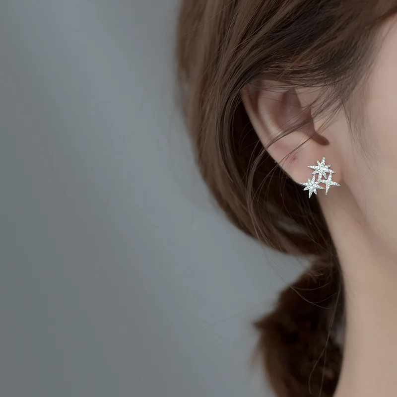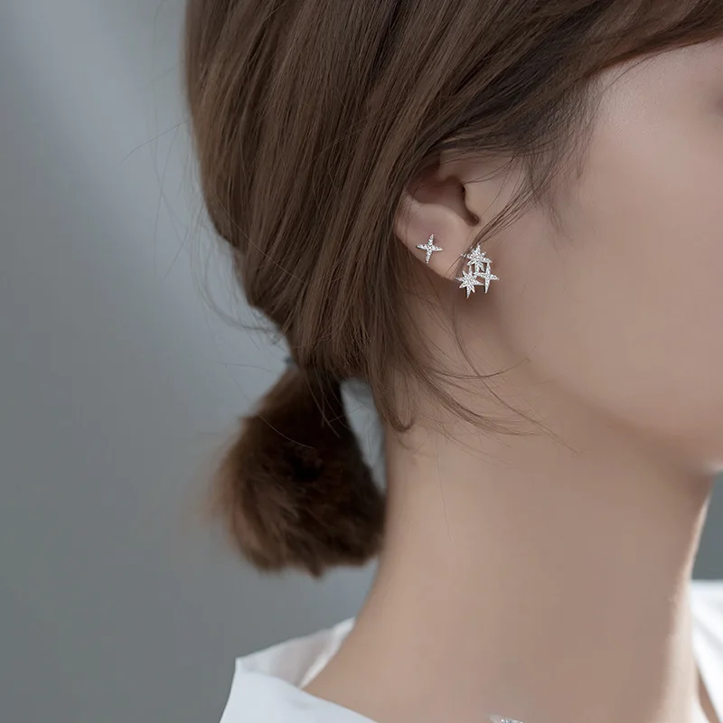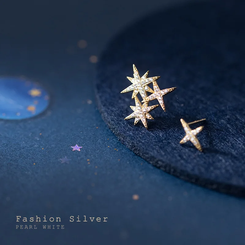 Блестящие серьги-гвоздики "Звёзды" S925 стерлингового серебра Boho ювелирных изделий серьги с французским замком минимализм Pendientes серьги для Для женщин