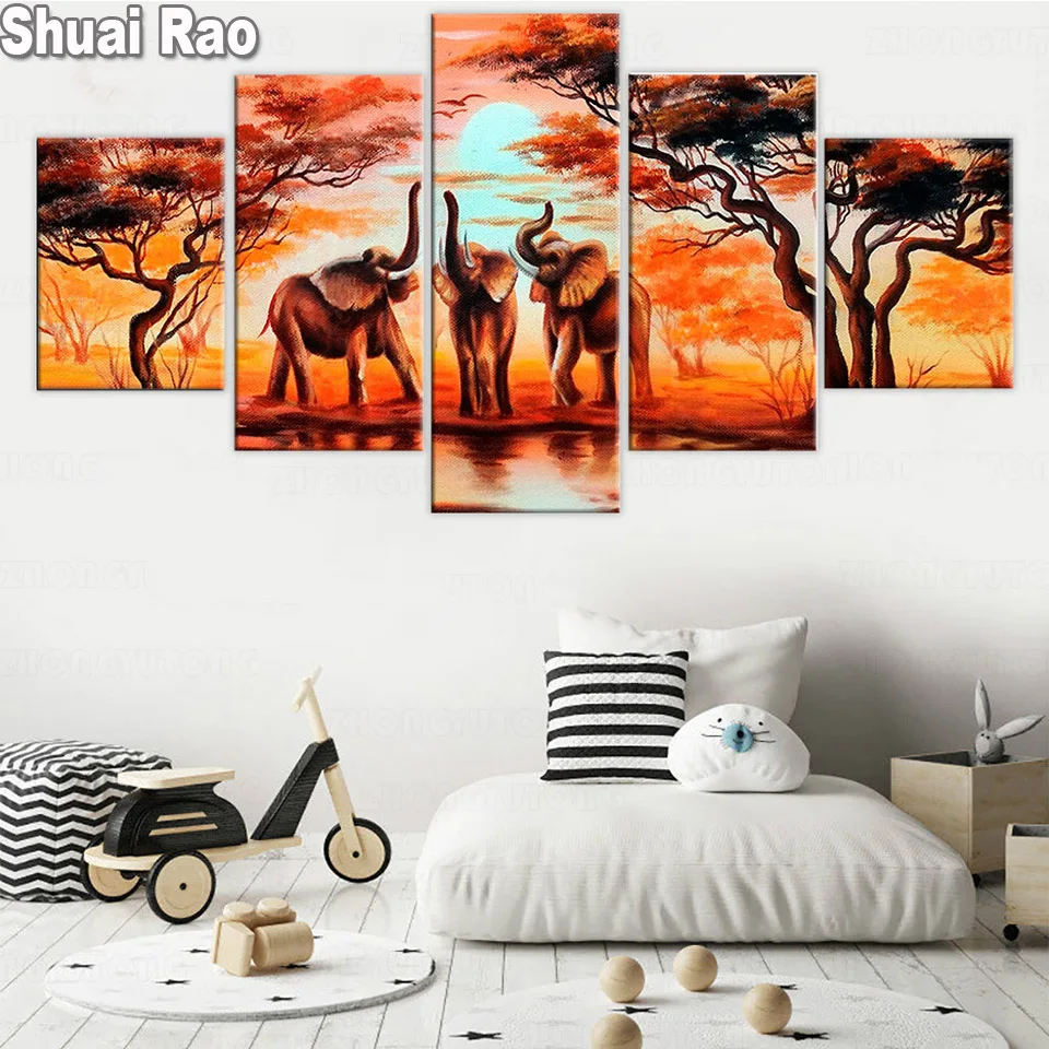 5 шт. Алмазная вышивка слон животные мозаика алмазные картины полный квадратный круглый стежок крест Африка дикая природа пейзаж,