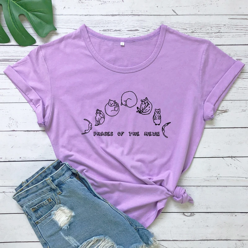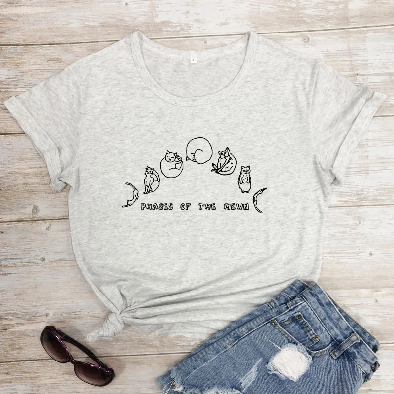 Футболка с изображением фазы меона, забавная Подарочная футболка с изображением кошки и Луны, футболка в стиле хиппи