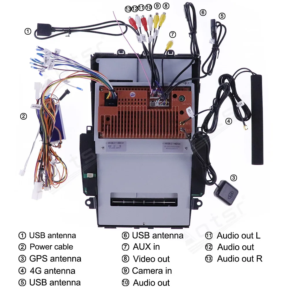 Наш продукт поставляется с GPS антенной, gps-картой для вашей страны, usb-адаптером, аудио и видео входным кабелем, кабелем питания... и т. д., все наборы для установки будут в посылка.