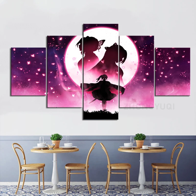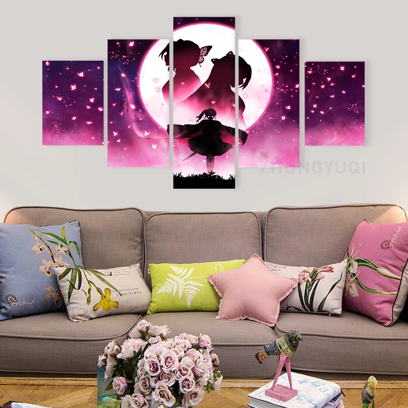 Постер-Рассекатель демонов, HD, 5 шт., мультяшная аниме-картина меча, розовая луна, цуюри, канао, комиксы, Настенный декор, Постер для детской комнаты