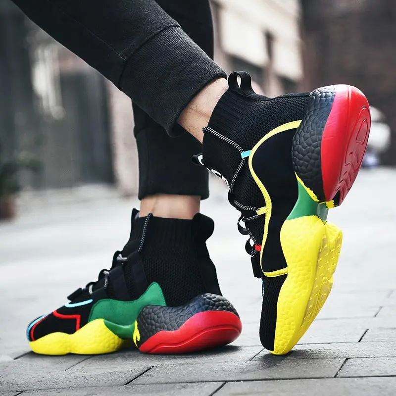 Красочные подошвы дышащие кроссовки мужские спортивные кроссовки ле...