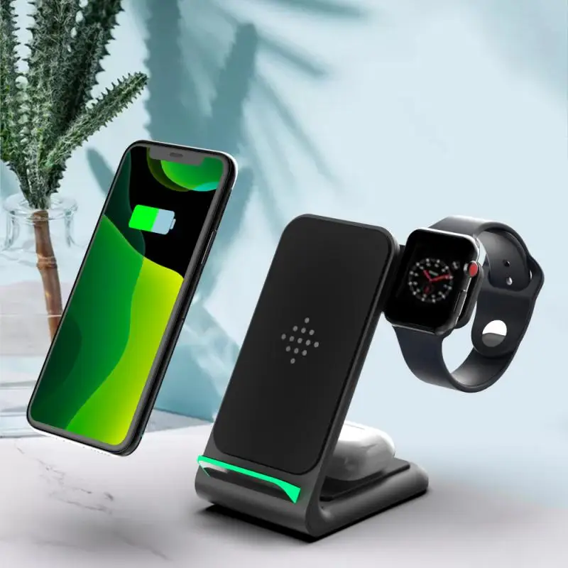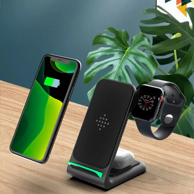 Беспроводное зарядное устройство (15 Вт) + часы (3 Вт) + отсек для наушников (3 Вт/мобильный телефон 5 Вт)