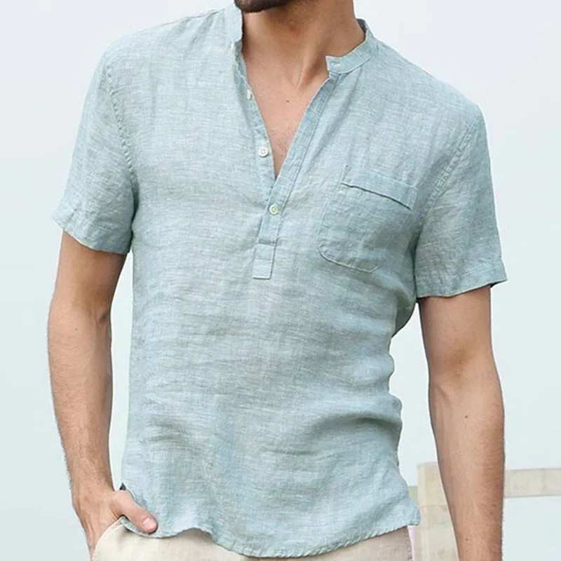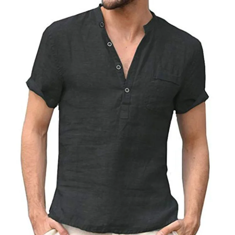 Новинка 2021, летняя мужская рубашка из хлопка и льна, Повседневная Блузка, мужская рубашка, топы с коротким рукавом спереди, футболка, мужская рубашка MY350
