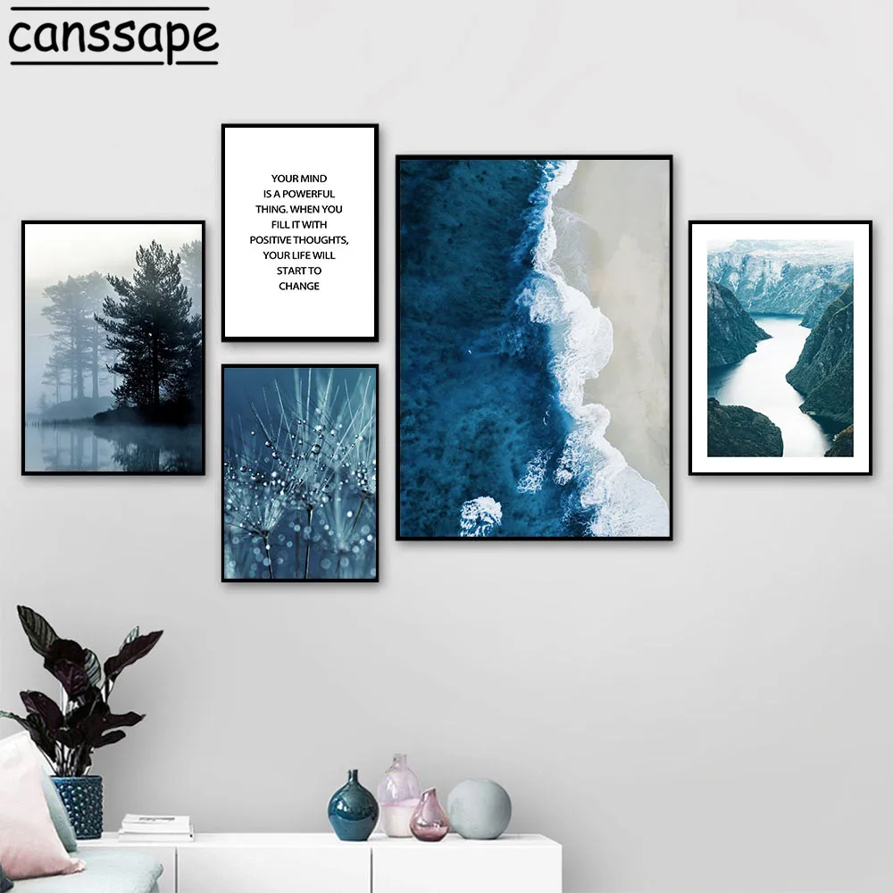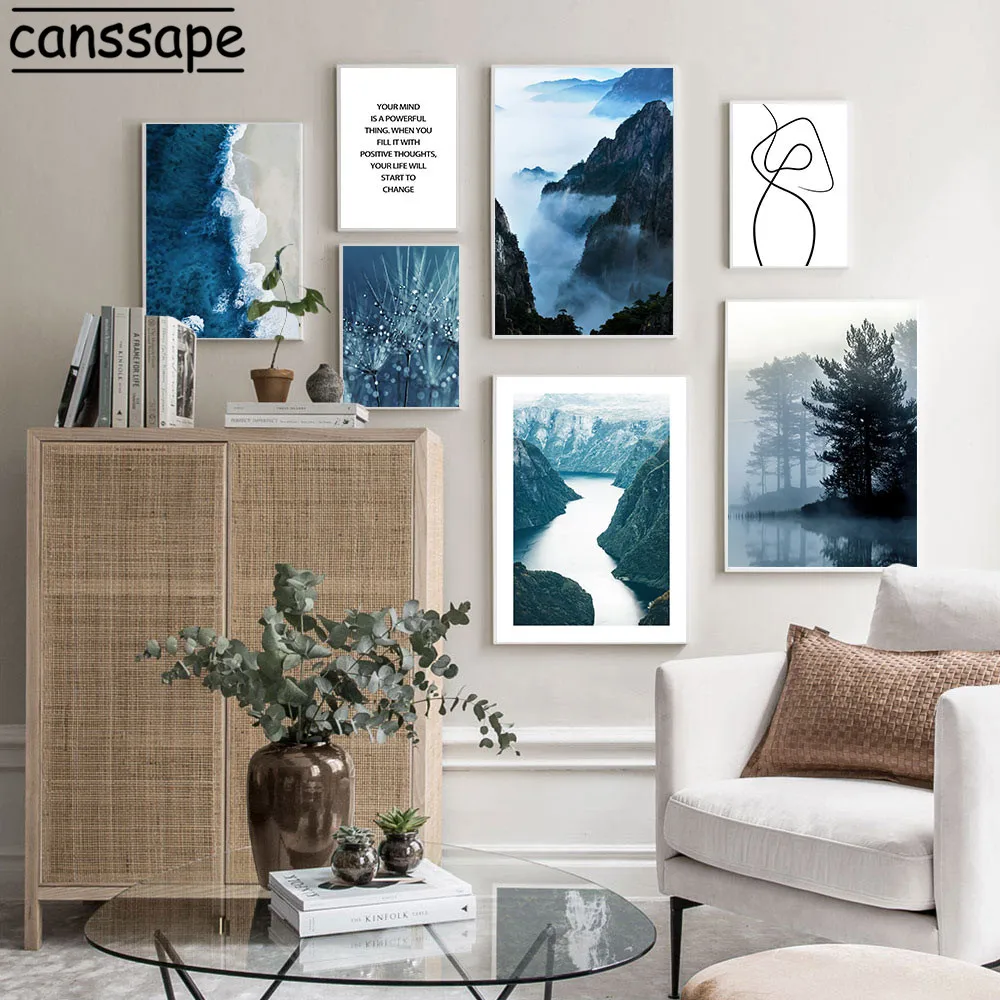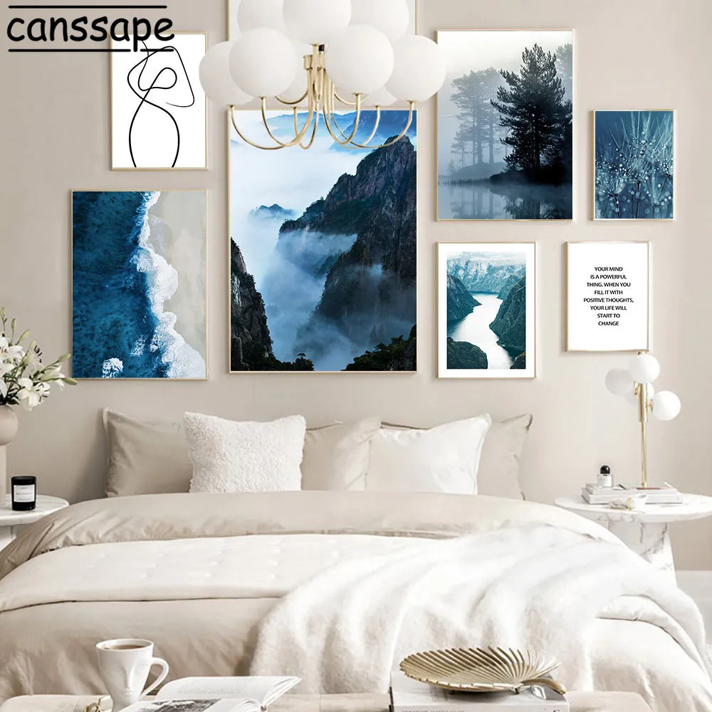 Настенная картина с изображением Фогги и гор, постер на холсте с изображением синего пейзажа, с морским постером, украшение для гостиной в скандинавском стиле