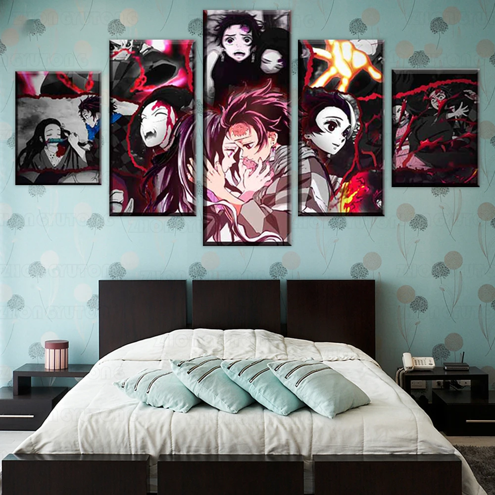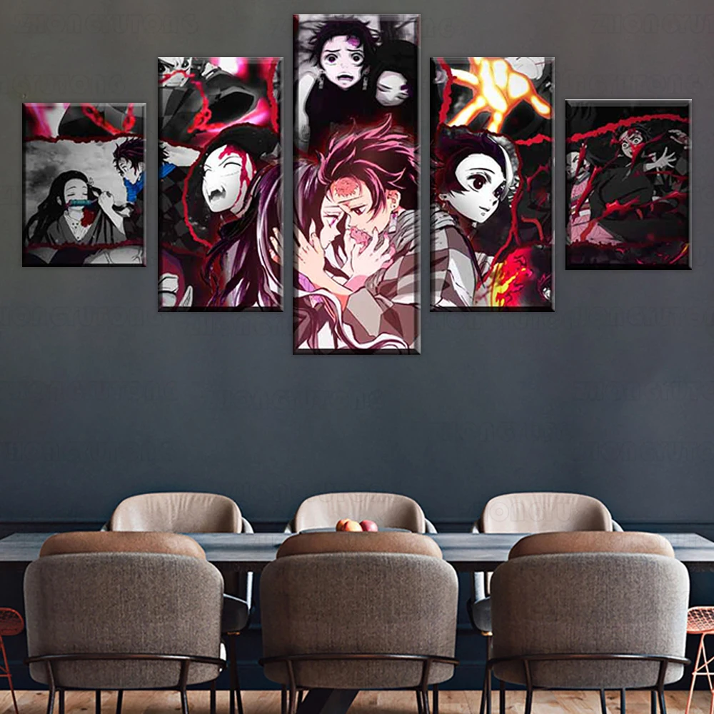 Домашний декор, 5 панелей, холст, настенное искусство, рассекающий демонов киметасу, картина No Yaiba, картины, печатная модульная рамка, плакат для гостиной