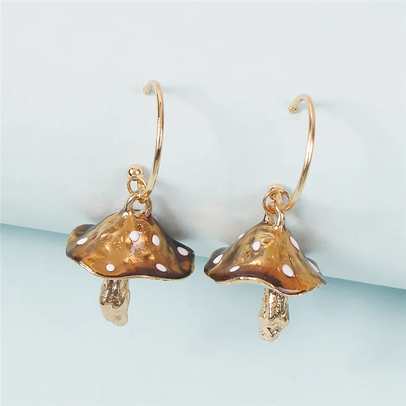 Серьги-подвески в виде грибов для женщин, уникальные серьги-подвески, милые золотистые Женские аксессуары, модные ювелирные изделия, модные дизайнерские украшения