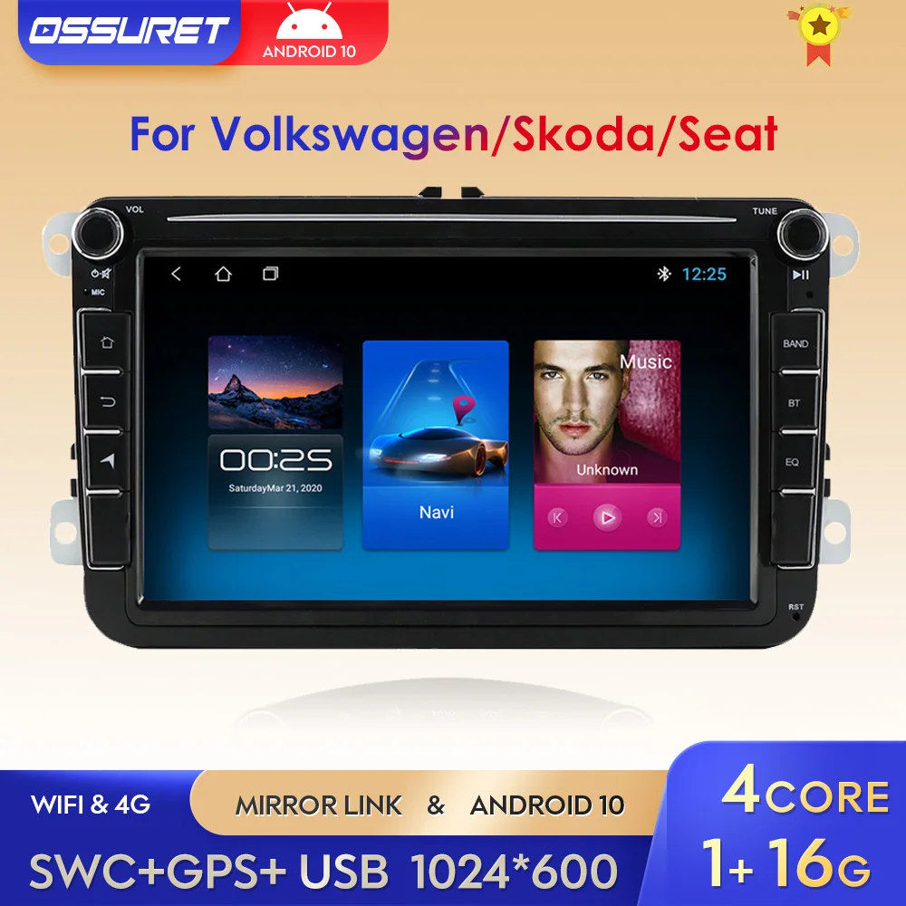 4 ядра Android 10 2 DIN Автомобильный GPS плеер для VW Passat B6 CC...