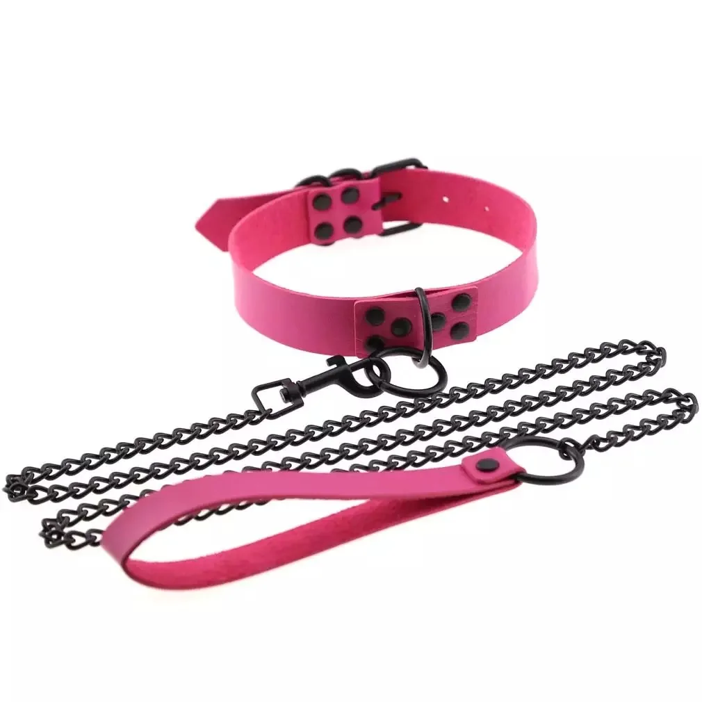 Поводок женский из искусственной кожи, черный, в готическом стиле, для БДСМ, ожерелье, бондаж