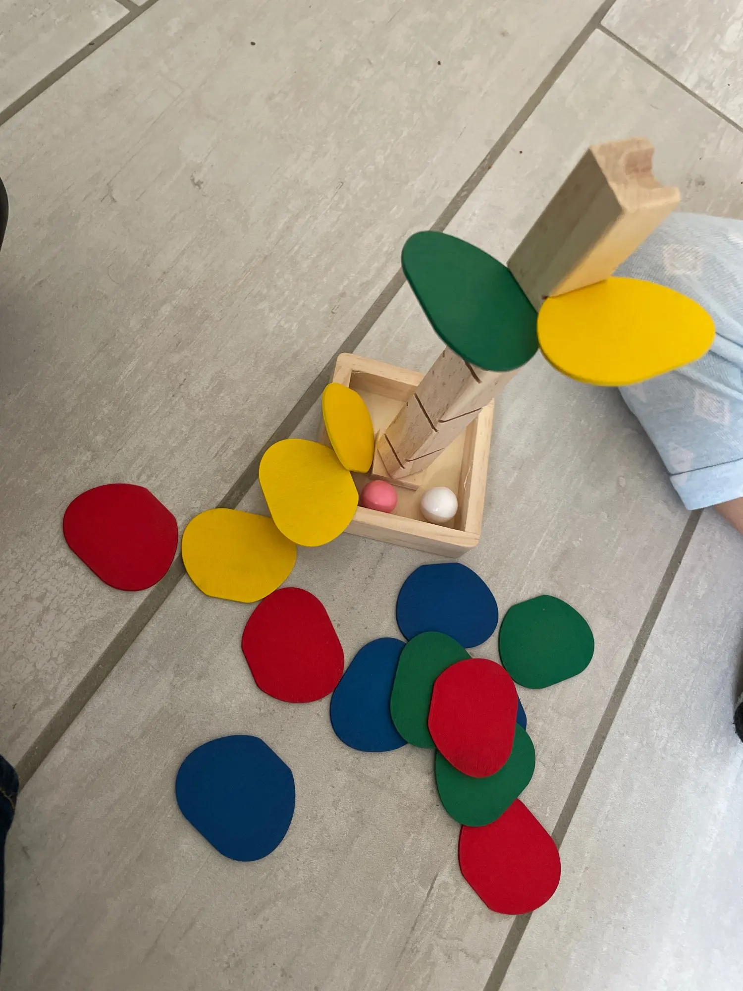 Даже для взрослых очень сложно положить цветные деревянные кусочки в линии. Не подходит для детей 2 лет