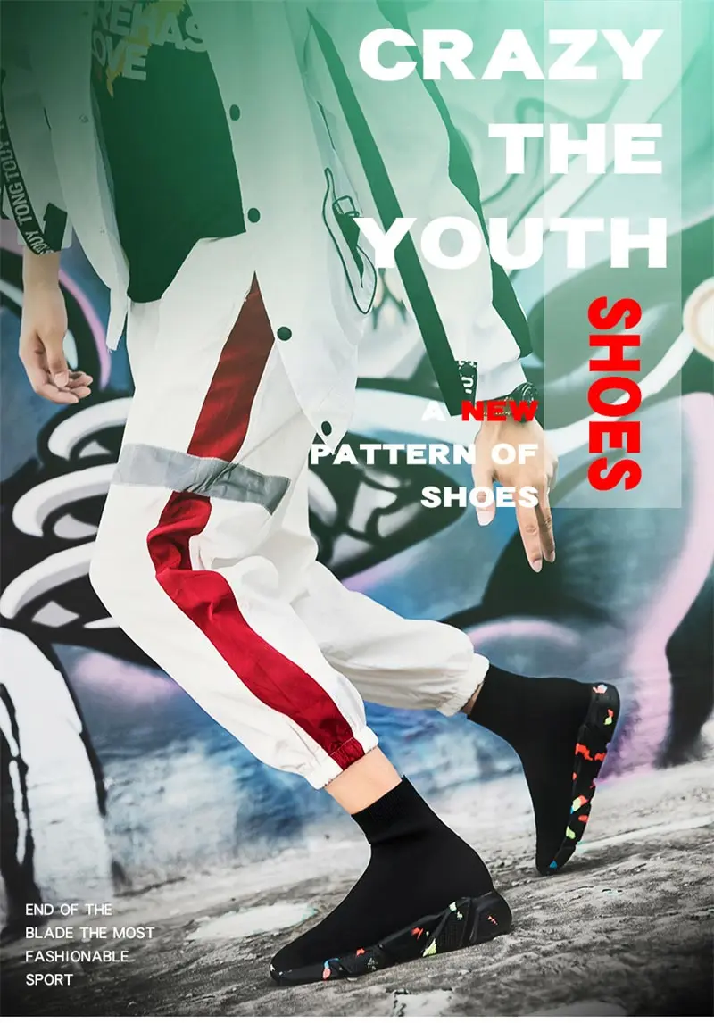 Большие размеры, высокие базовые летние кроссовки, мужские носки, кроссовки, мужские черные спортивные кроссовки, женская спортивная обувь, мужская вязаная спортивная обувь