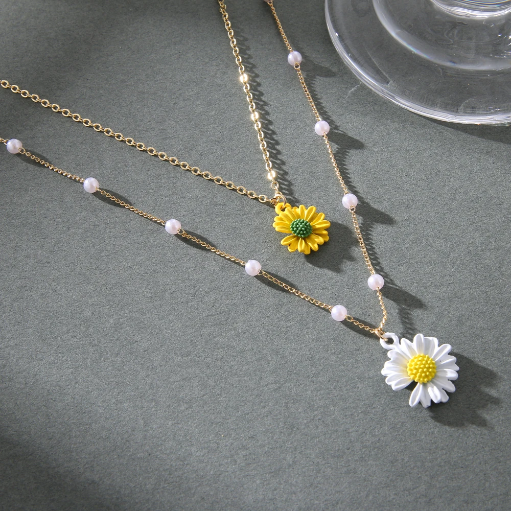 Модное богемное ожерелье с цветком маргаритки, жемчужная цепочка, о...