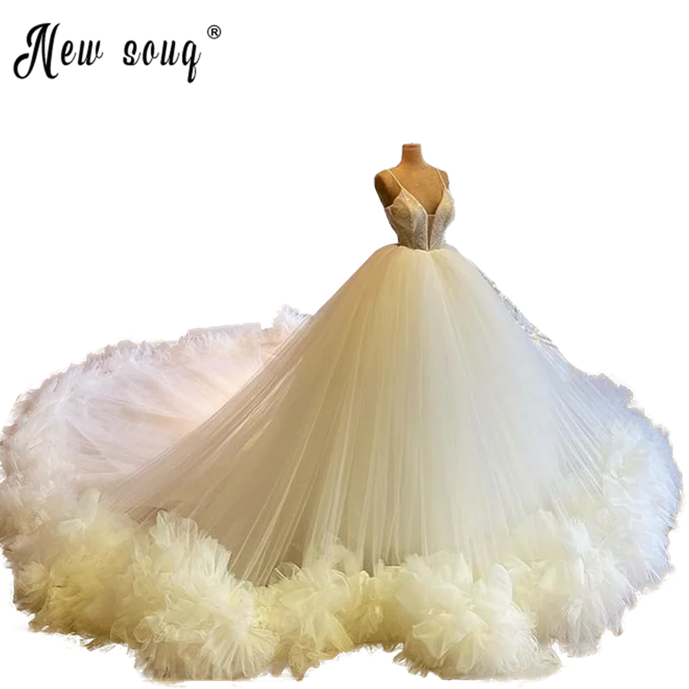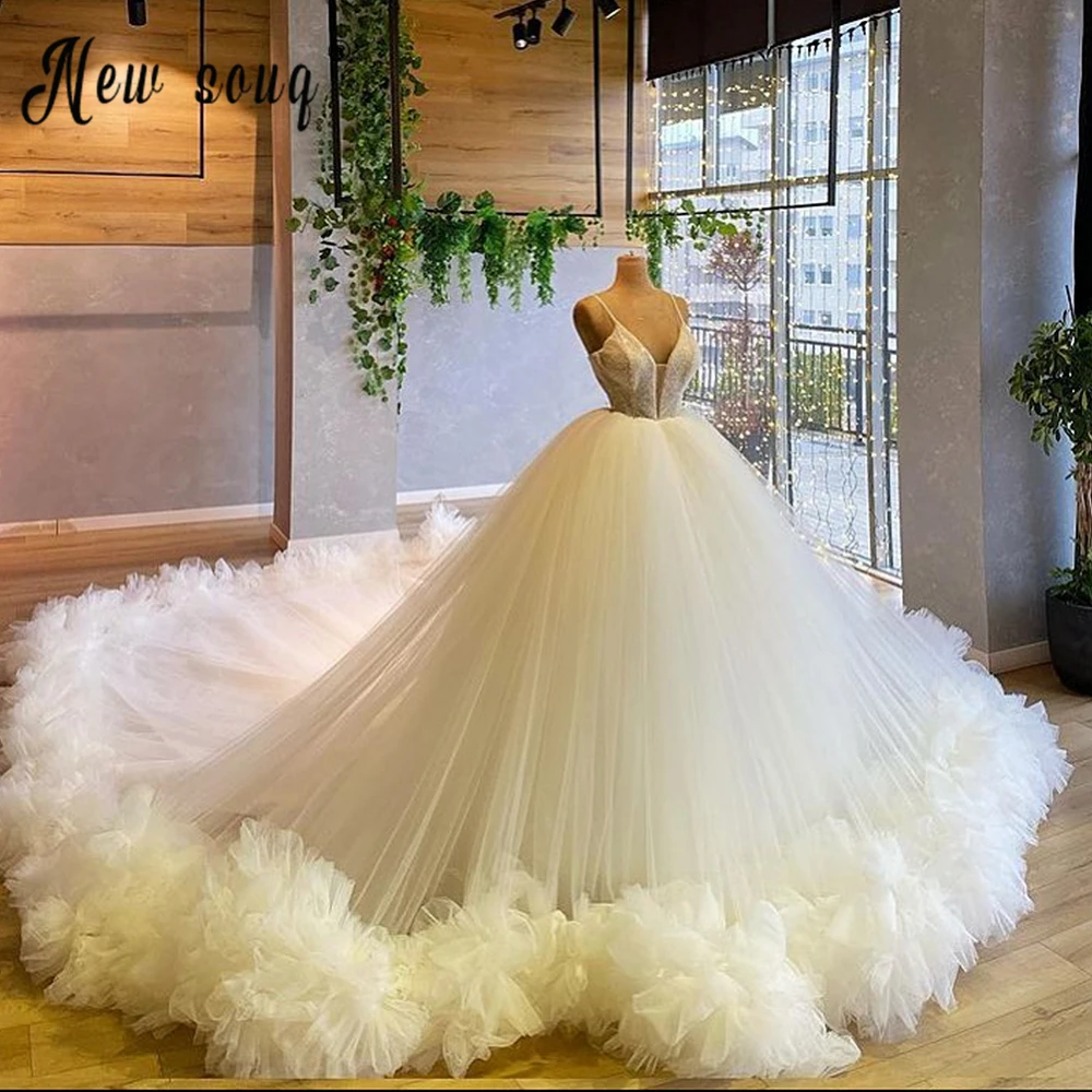 Роскошное свадебное платье цвета слоновой кости с пышными буфами на тонких бретельках с v-образным вырезом и оборками, Свадебное бальное платье, роскошное свадебное платье на заказ