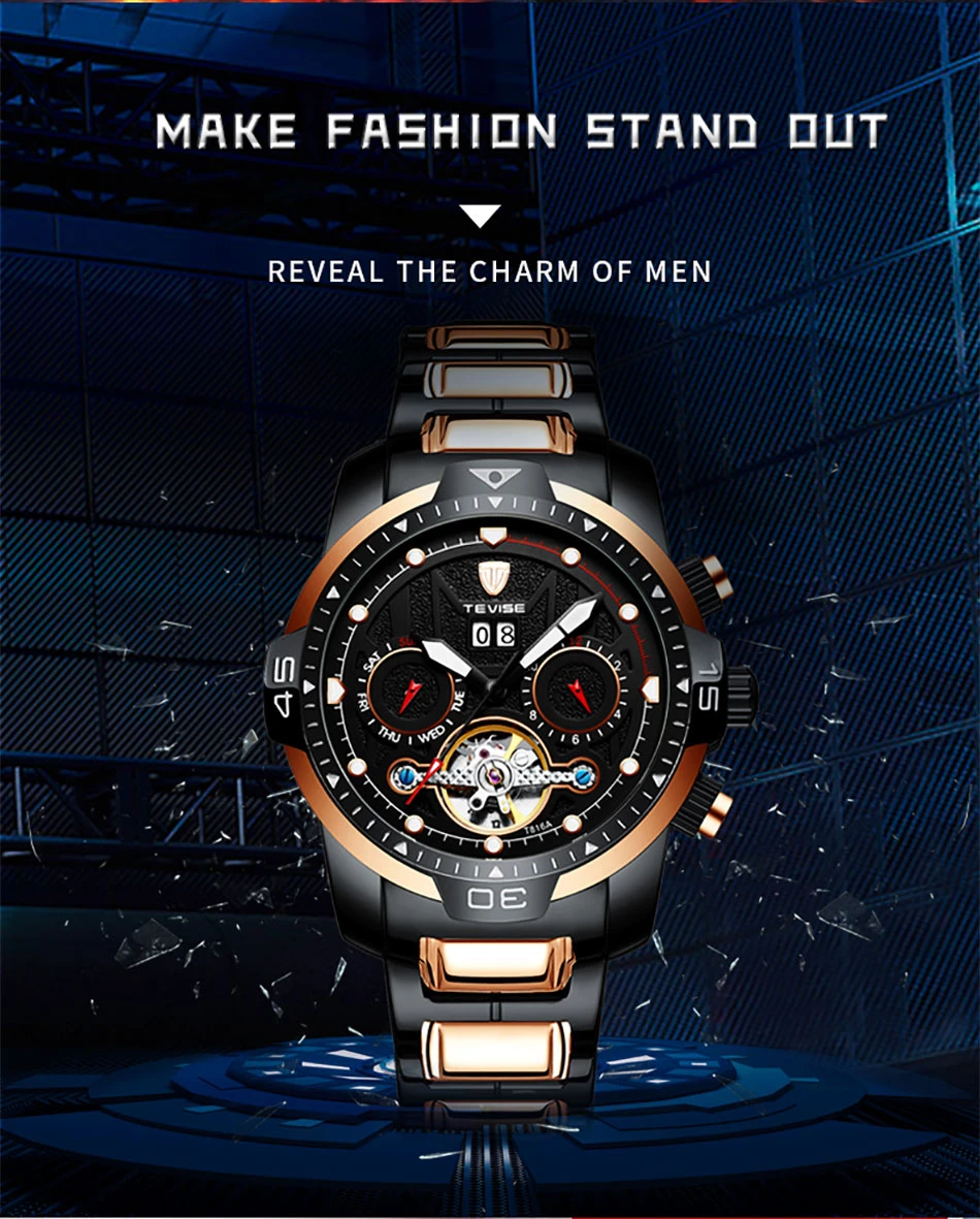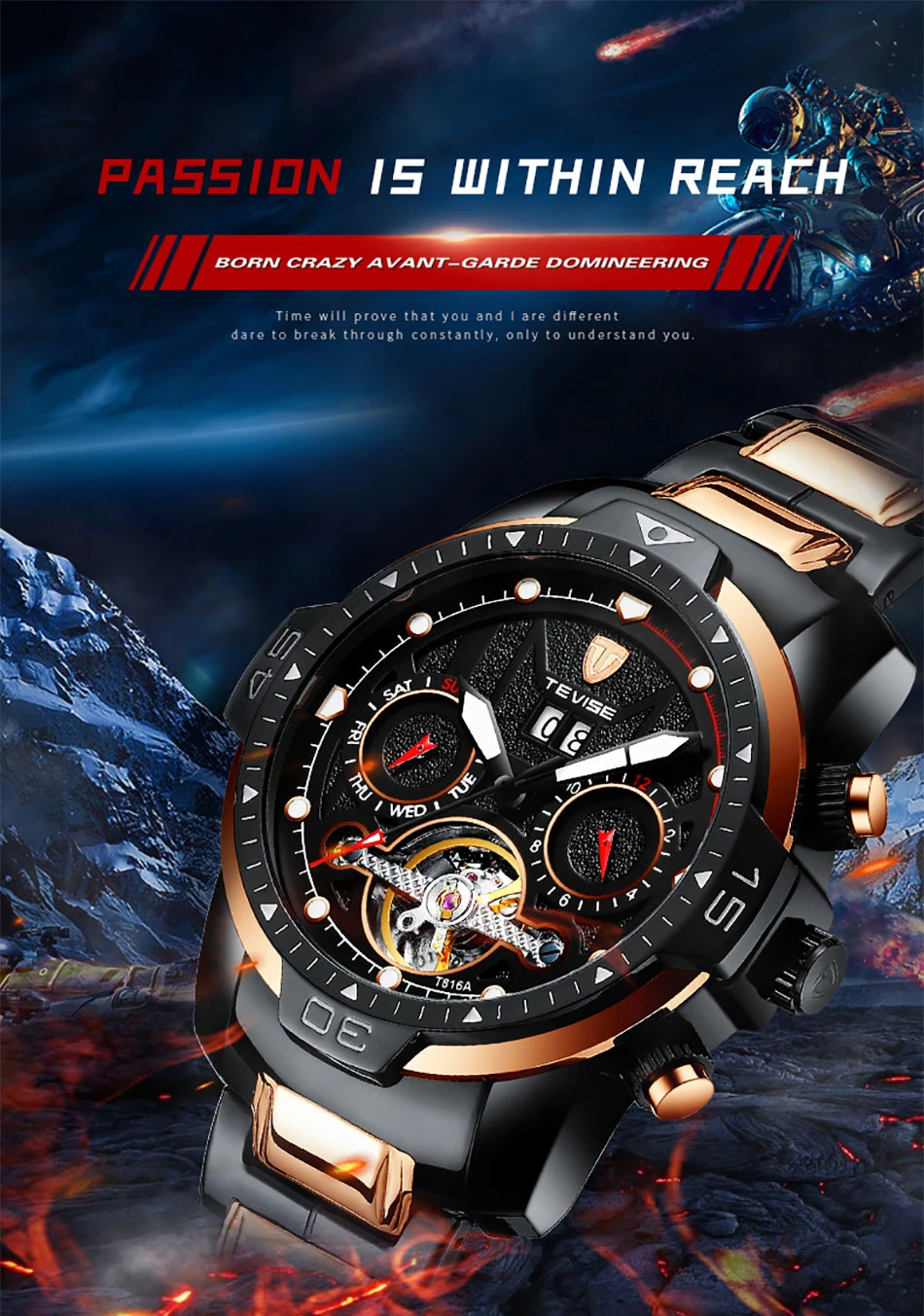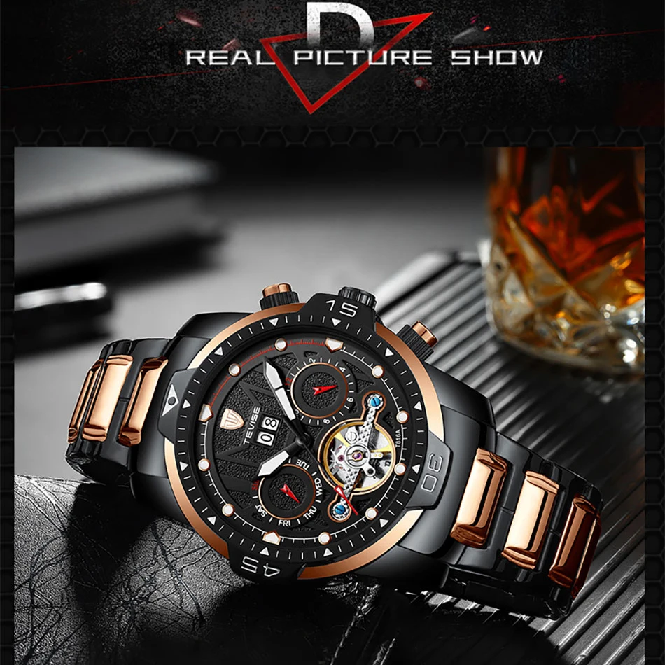 Новинка 2021, роскошные мужские механические наручные часы TEVISE из нержавеющей стали, модные часы от лучшего бренда, мужские часы с сапфировым стеклом, мужские часы