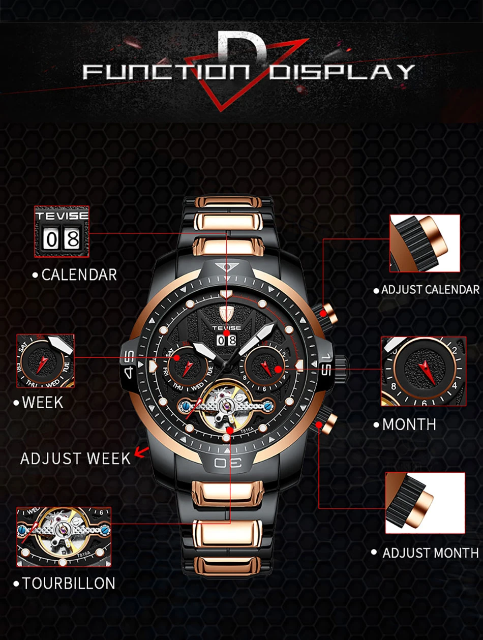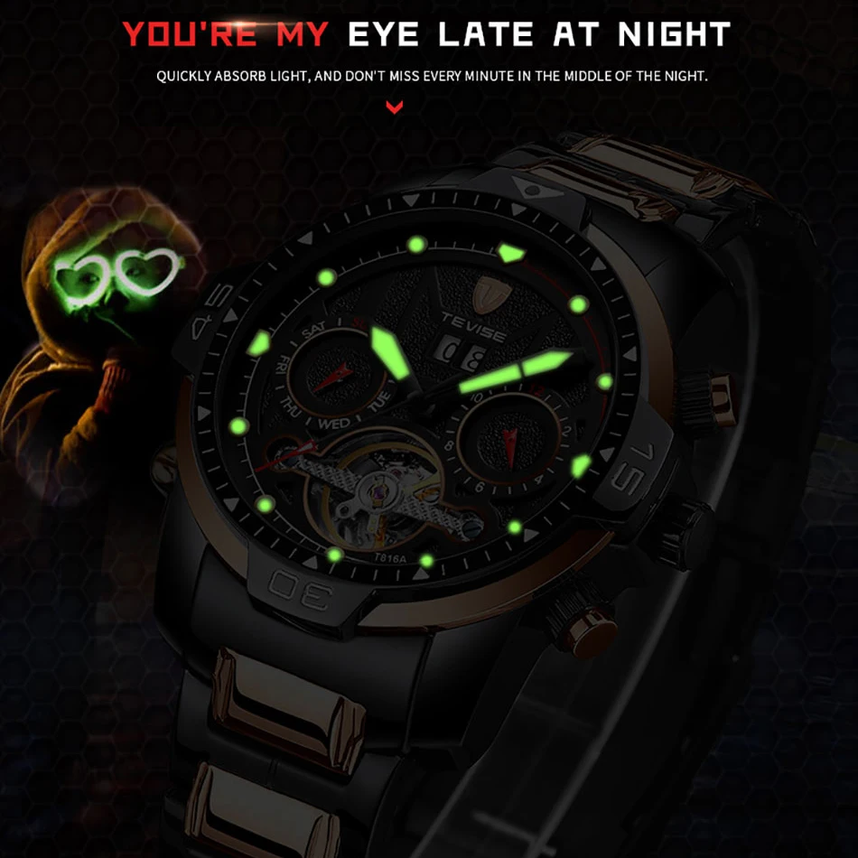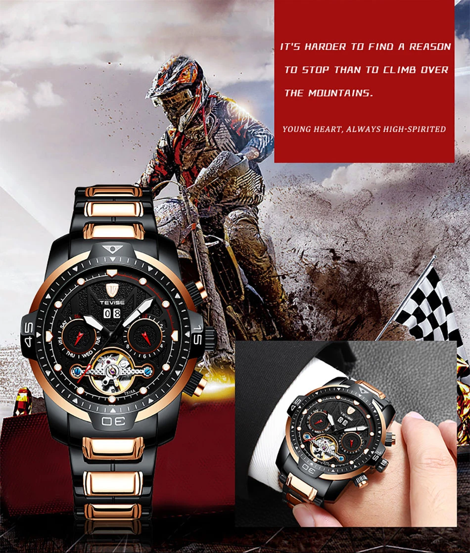 Новинка 2021, роскошные мужские механические наручные часы TEVISE из нержавеющей стали, модные часы от лучшего бренда, мужские часы с сапфировым стеклом, мужские часы