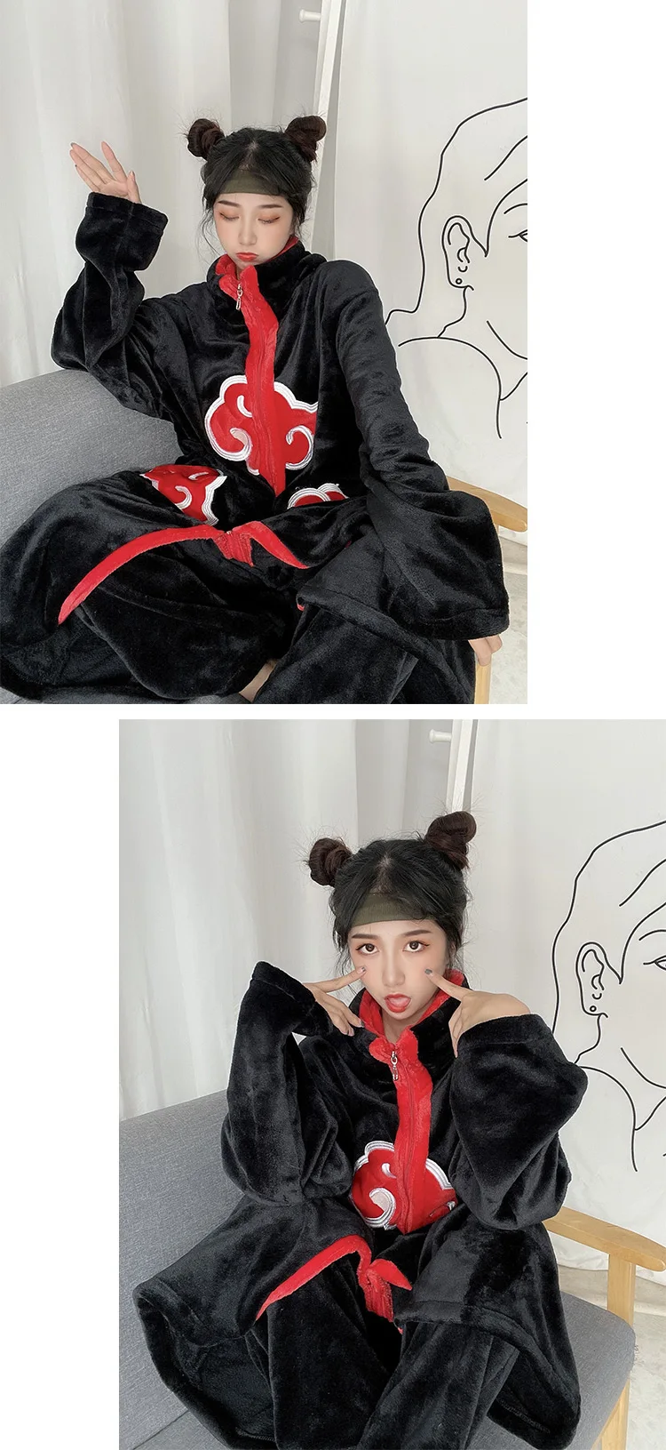 Акция Аниме Косплей пижамы унисекс косплей костюм Kurama фланелевая...