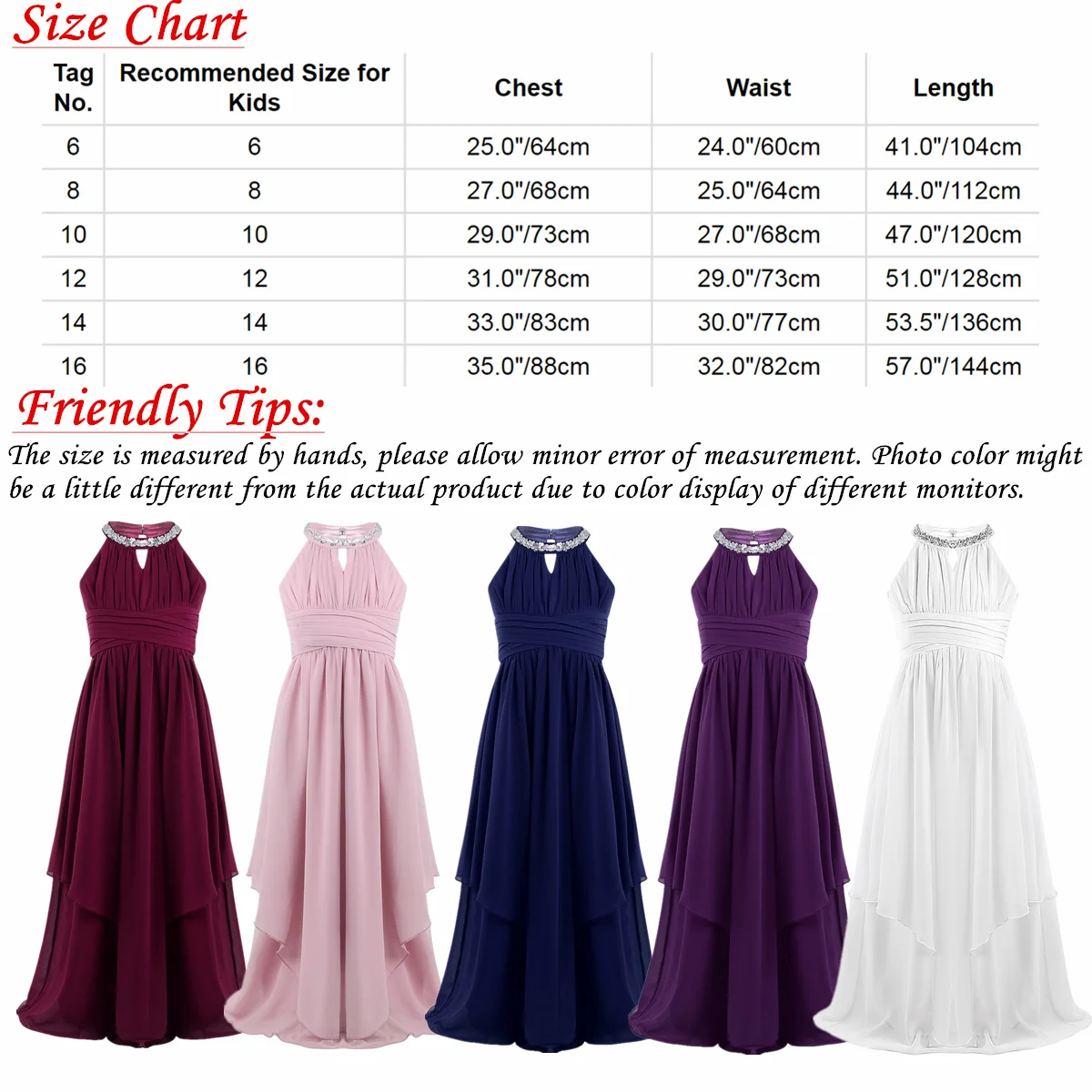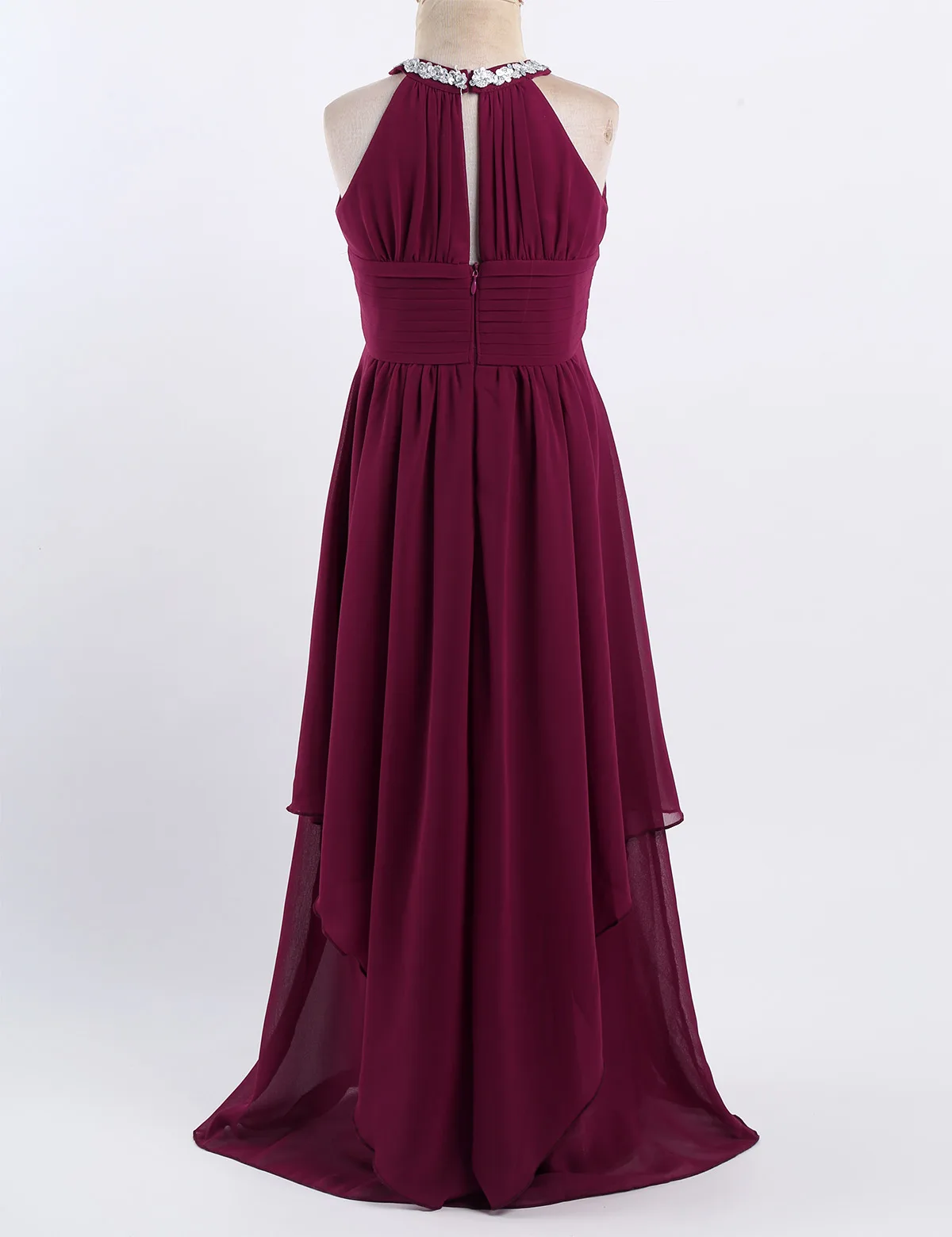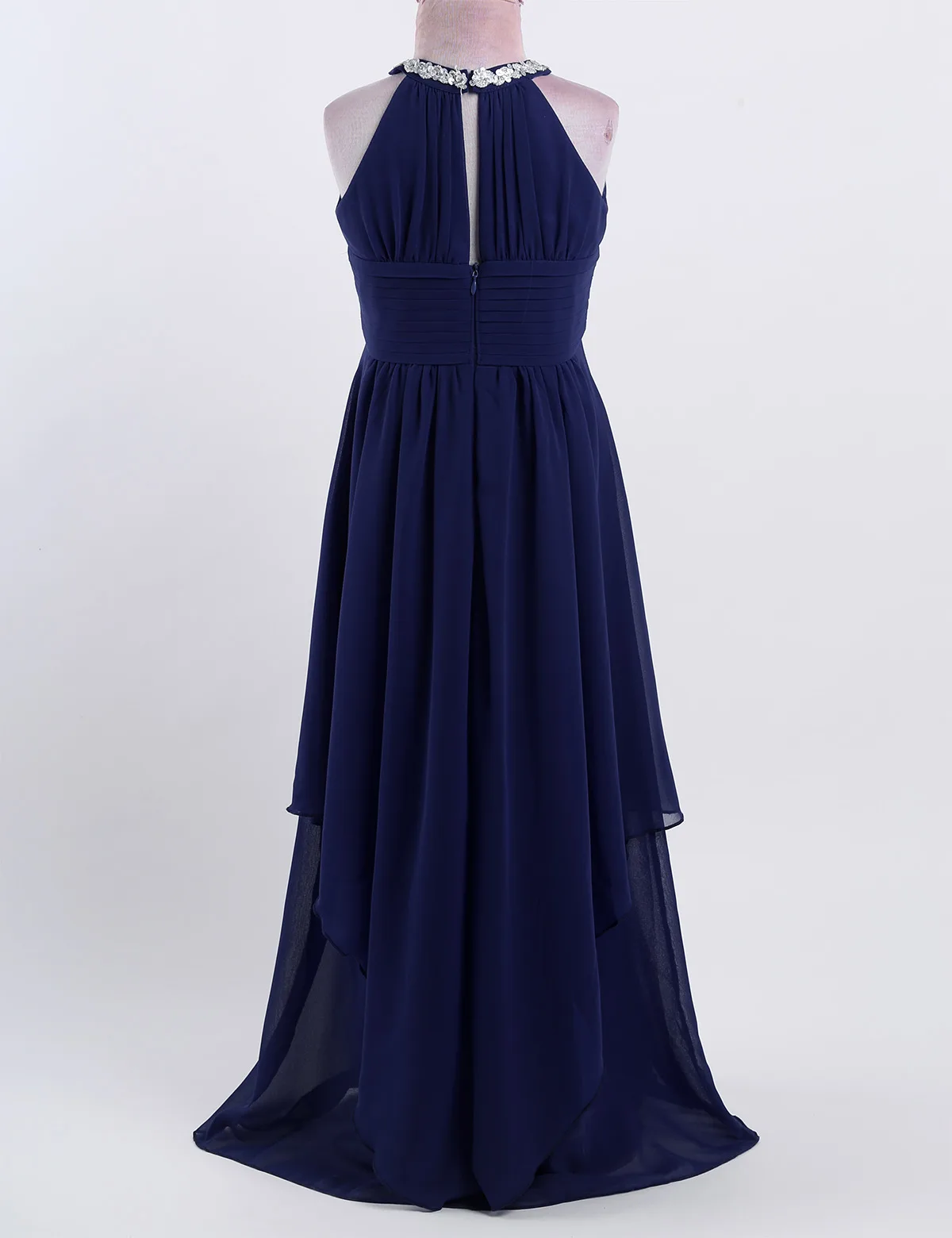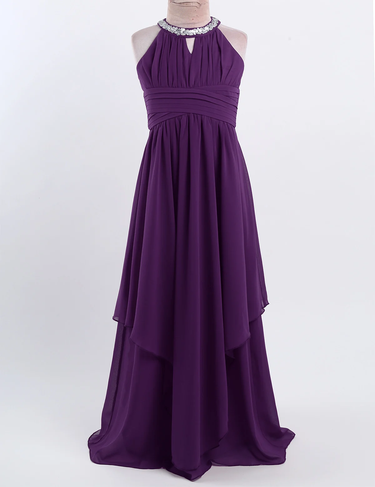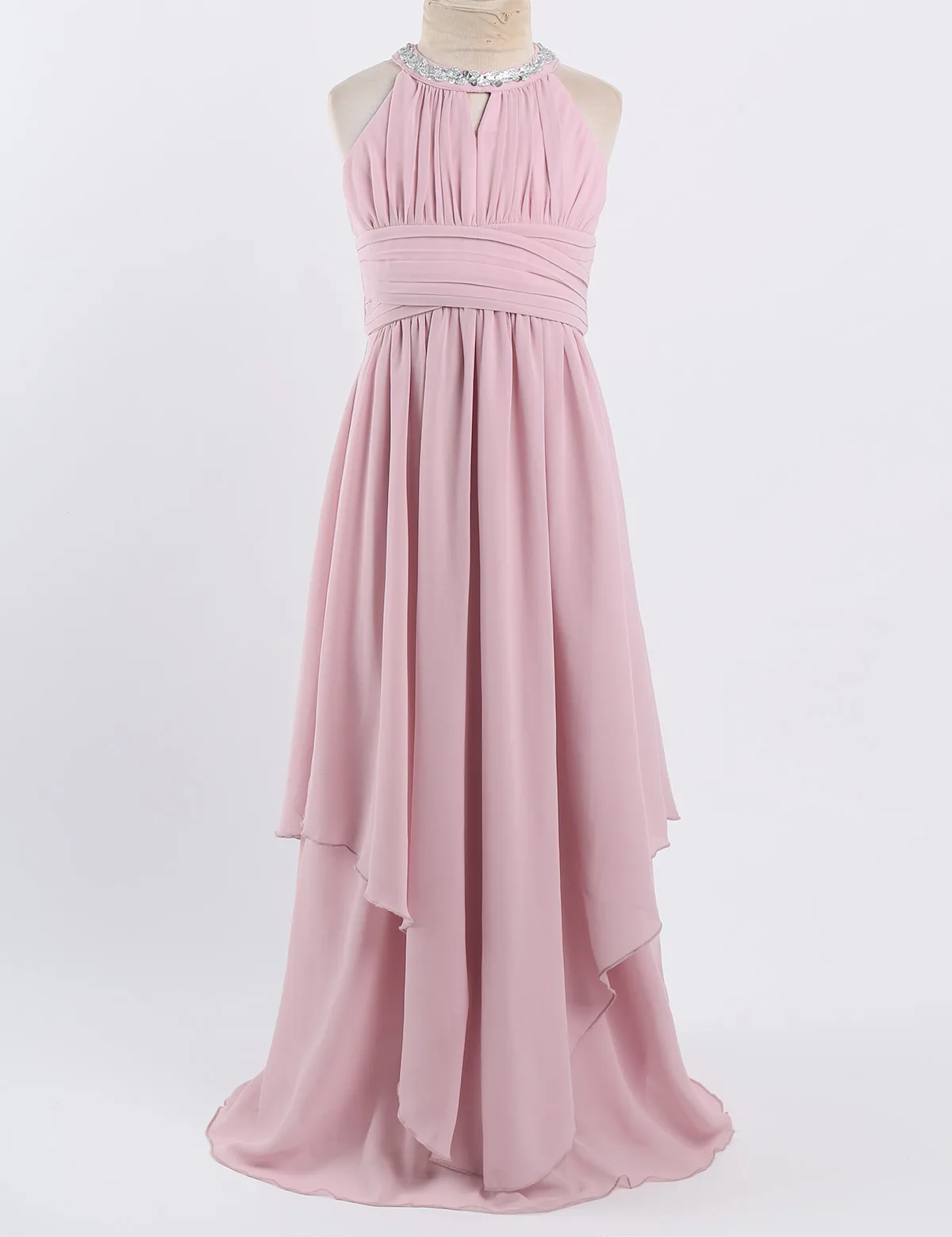 Особенности: Платье изготовлено из полиэстера и шифона, ручная стирка и сушка. Таблица размеров означает возраст для девочек, но только для общего руководства. Без рукавов, с блестками, на шее, с застежкой. Лиф с рюшами и треугольными вырезами спереди. Плиссированный стиль с высокой талией. Спинка с раздельным дизайном. Скрытая молния сзади. 3 слоя платье из 2-х слоев шифона, 1 слой атласной подкладки. Верхний шифоновый слой с асимметричным подолом. Красивое и стильное платье для вашей девочки. Идеально подходит для вечерние, свадьбы, театрализованного праздника, дня рождения, праздника, фотосъемка, официальное мероприятие или другие особые случаи.