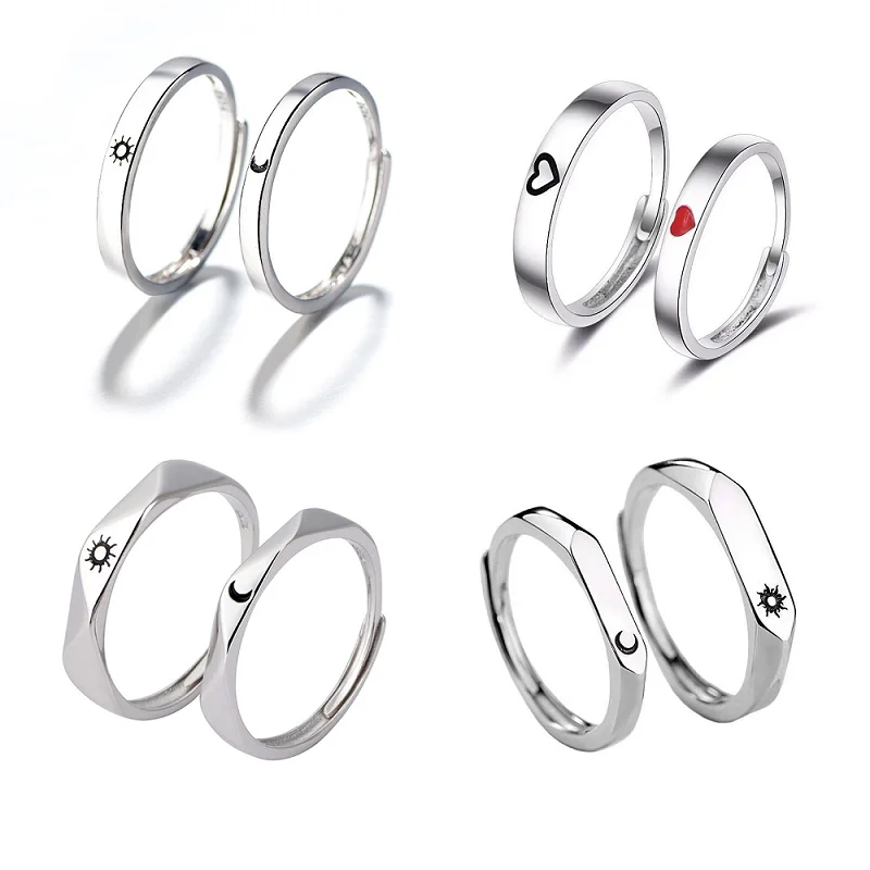 Набор Колец Sun Moon, регулируемые, для влюбленных, минималистский стиль, обручальное, простое, в любом стиле, Подарочная бижутерия