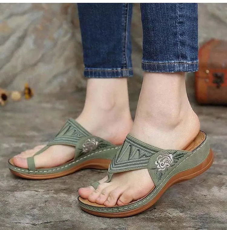 Сандалии женские с цветочной вышивкой, туфли из искусственной кожи, плоская подошва, римские шлепанцы, лето 2021