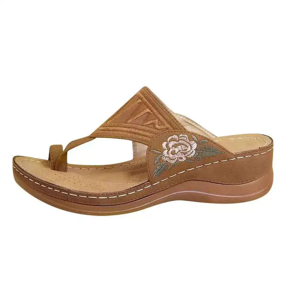 Шлепанцы женские с цветочной вышивкой, пляжные сандалии на танкетке...