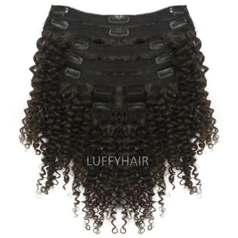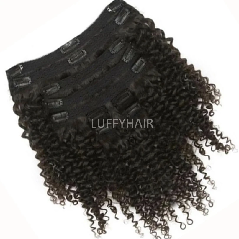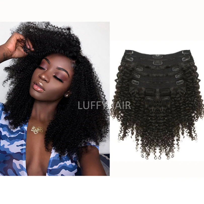 Монгольские 4b 4c афро кудрявые накладные человеческие волосы с клипсой естественного цвета 120 г 8 шт.компл. полностью вьющиеся человеческие волосы с клипсой