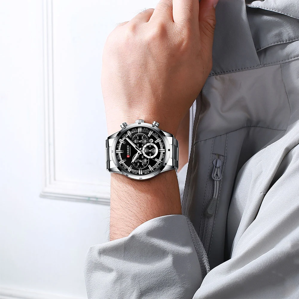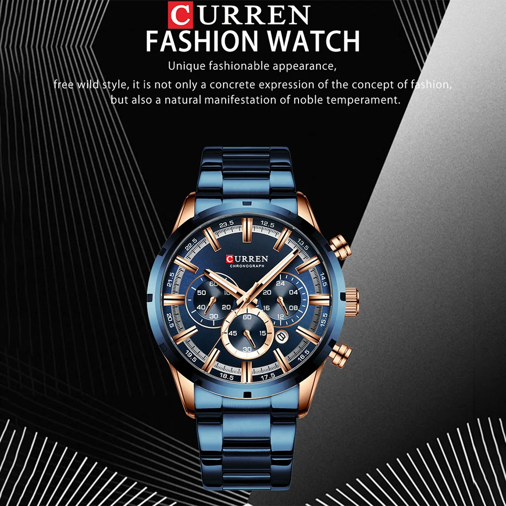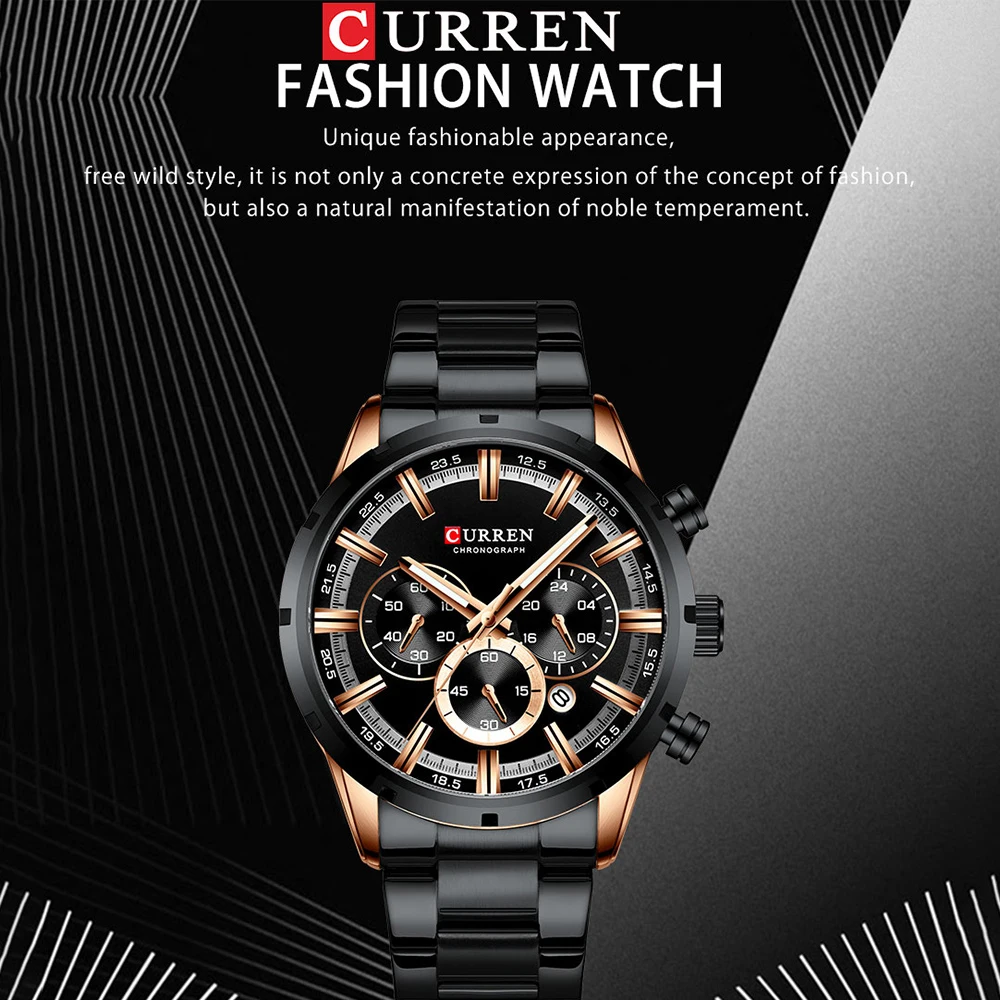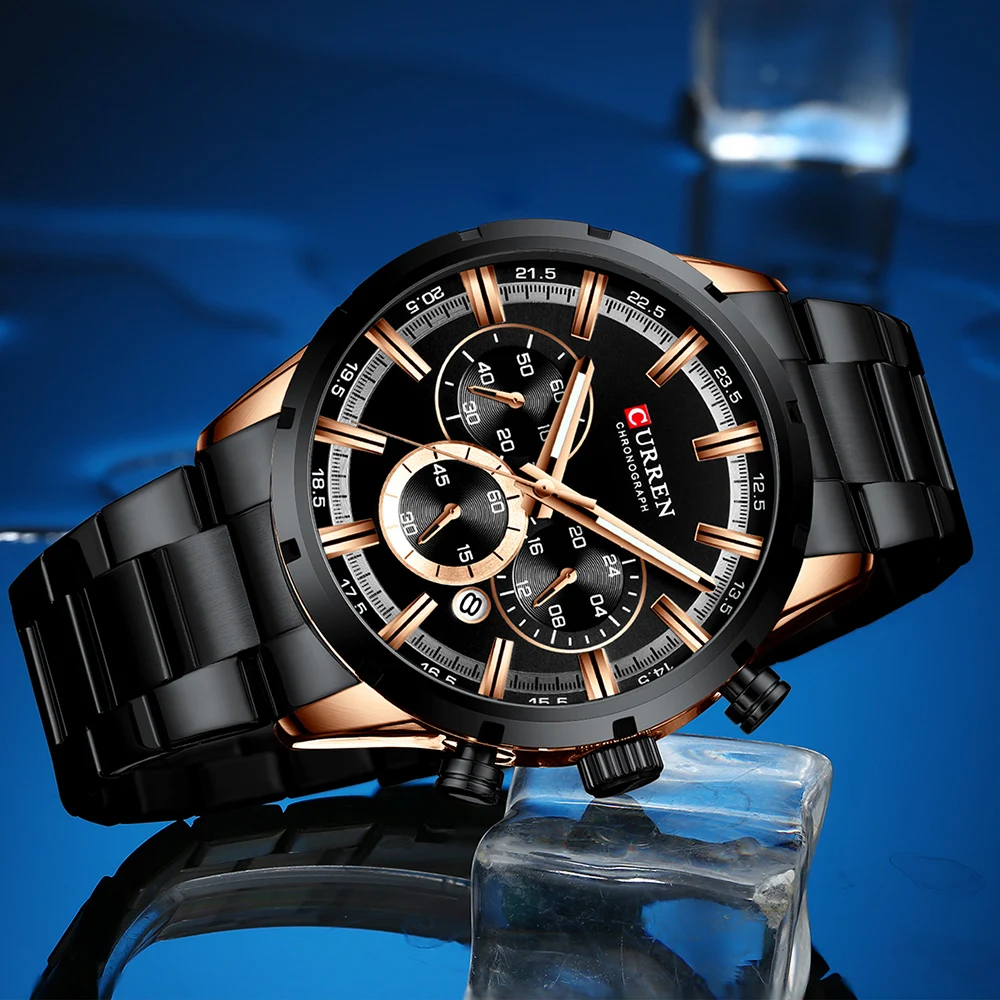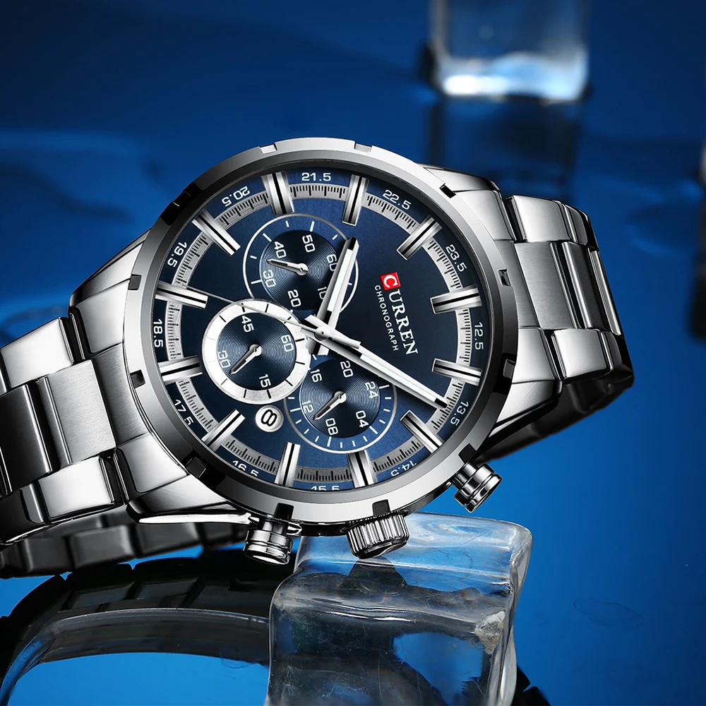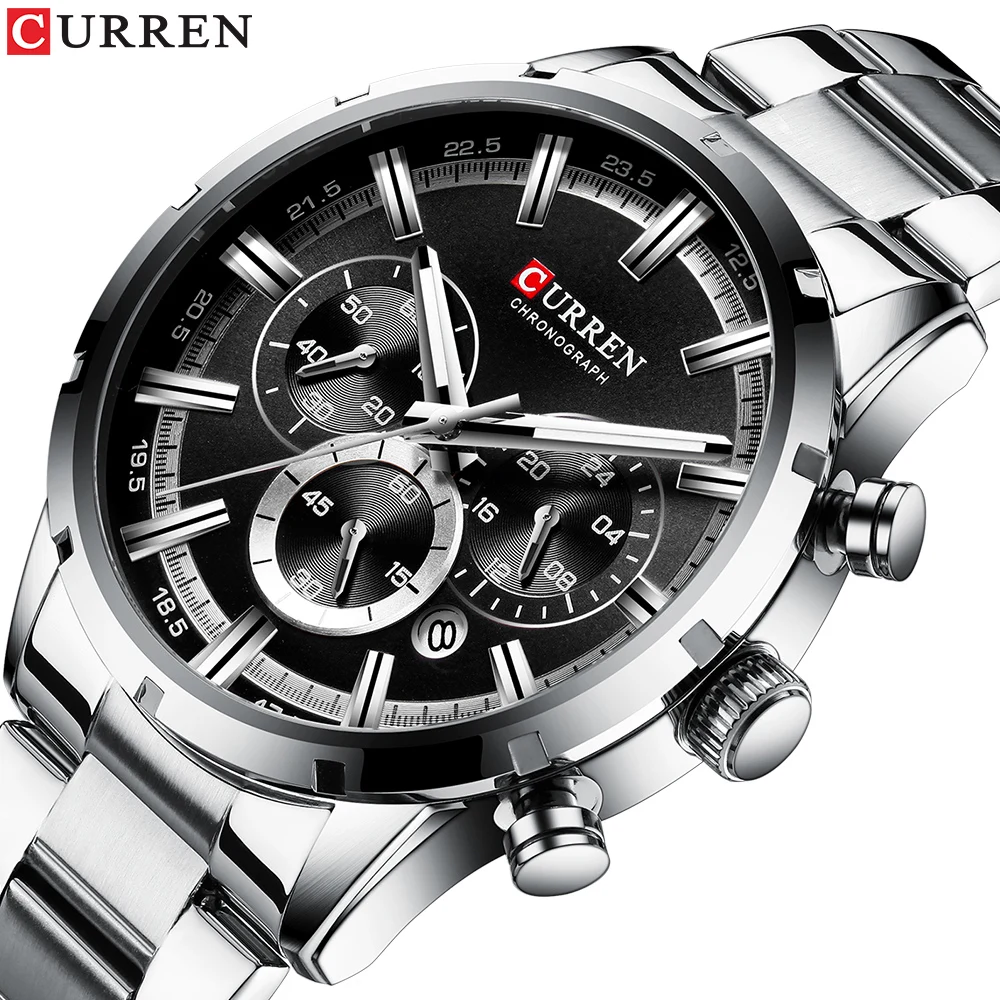 Часы наручные CURREN Мужские кварцевые, многофункциональные водонепроницаемые люксовые с календарем, с браслетом из нержавеющей стали, с подсветкой, 3 АТМ