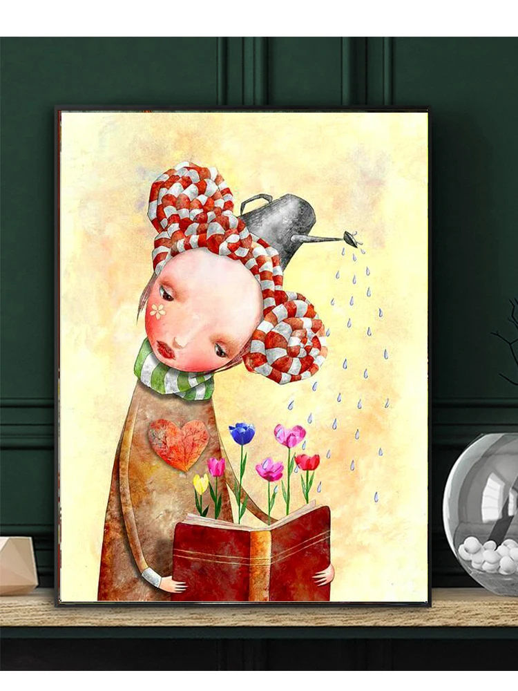 Алмазная живопись сделай сам, мультяшная девушка, цветок, вышивка крестиком, мозаика, полная квадратная, круглая, стразы, домашний декор, рукоделие