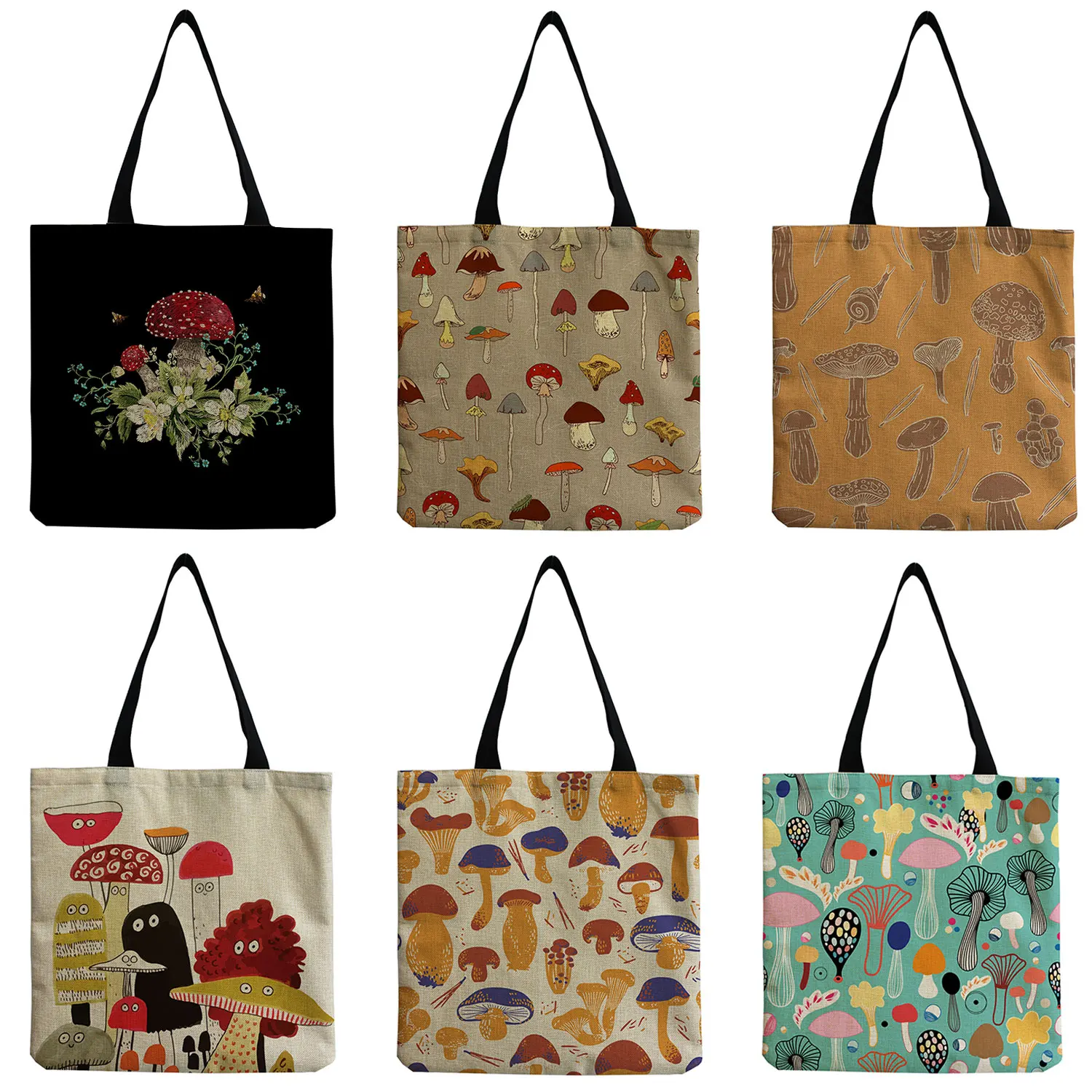 Красочные грибы милые женские сумки эко защита многоразовая складная сумка для покупок индивидуальная девушка практичная переносная школьная сумка