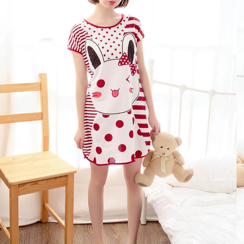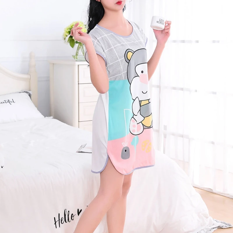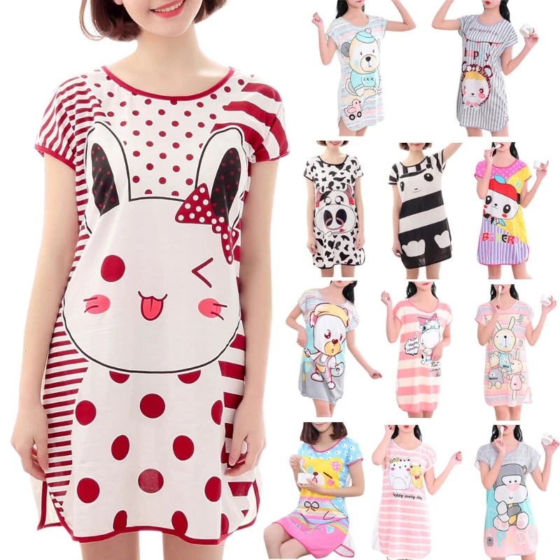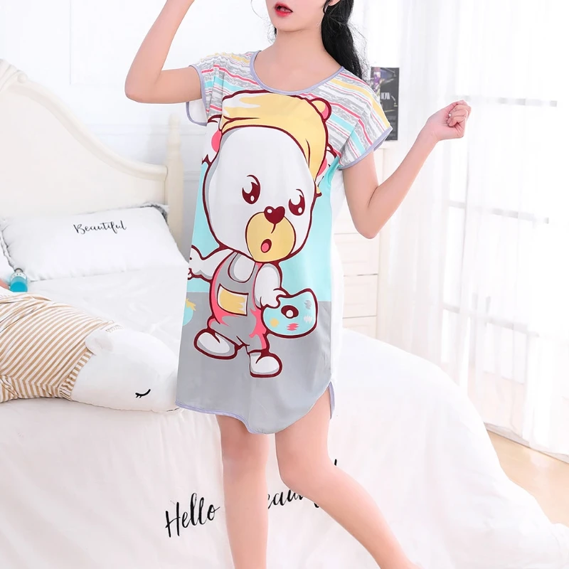 Женское летнее платье с коротким рукавом для сна с милым мультяшным принтом, ночная рубашка большого размера плюс, ночная рубашка для молодых девушек