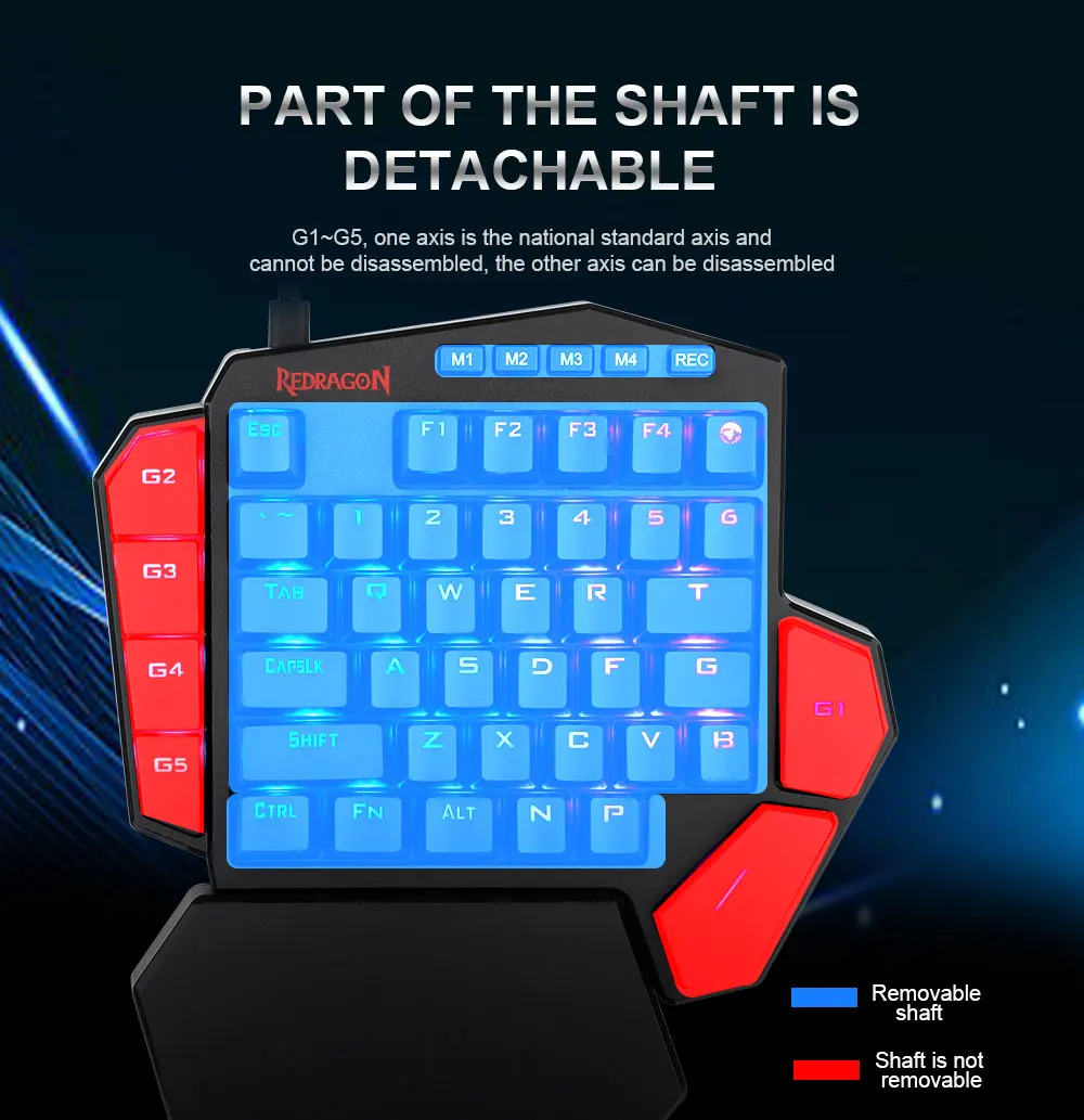 Механическая игровая клавиатура Redragon DITI K585, RGB 42 клавиши, синий переключатель, 7 программируемых клавиш макро для FPS LOLPUBG игр