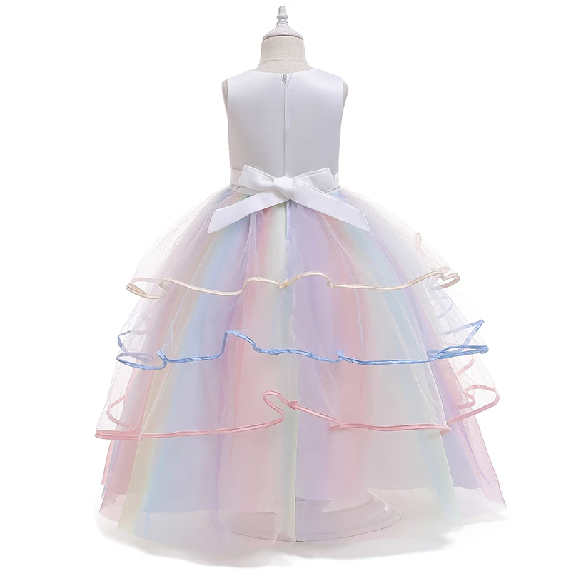 Радужное платье для девочек с единорогом, длинное платье для рождественской вечеринки, карнавальный костюм на Хэллоуин, детское платье принцессы на день рождения от 3 до 14 лет