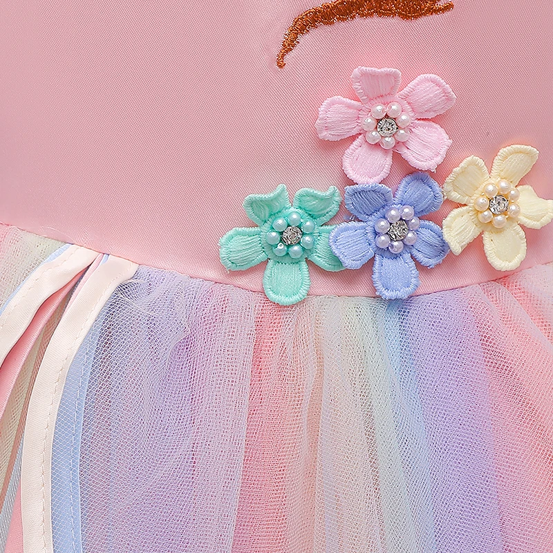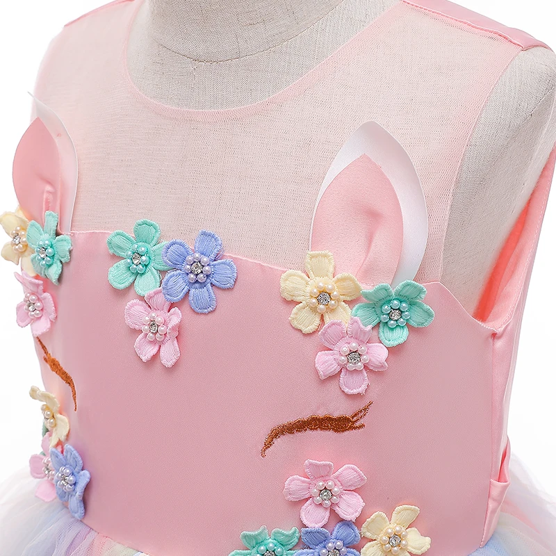 Длинное платье для девочек, с цветами, единорогом, радугой, на свад...