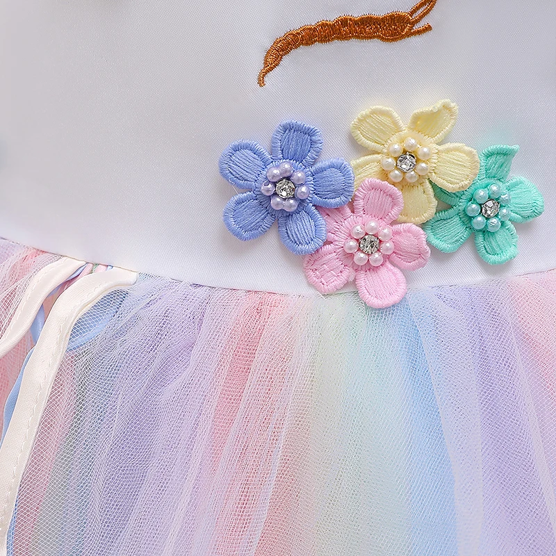 Платье с цветочным узором для девочек единорог радуга свадебная веч...