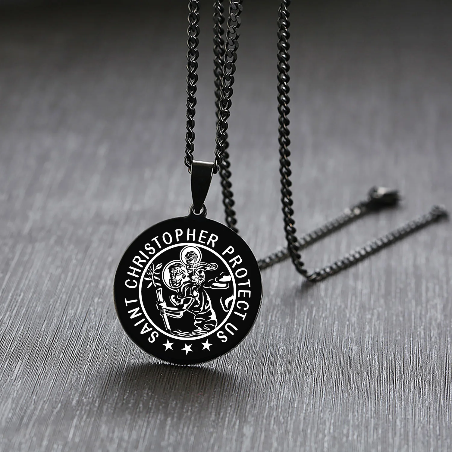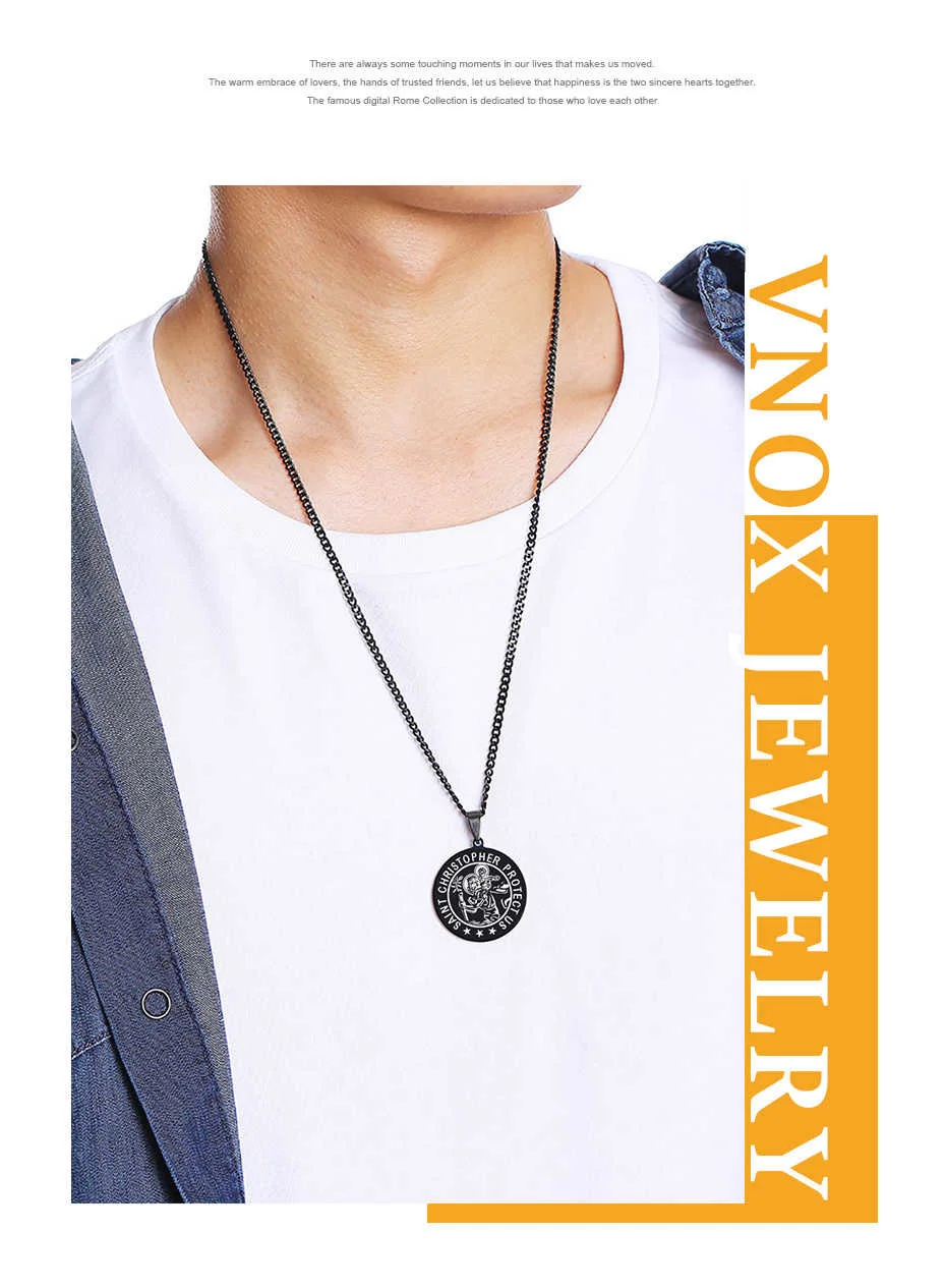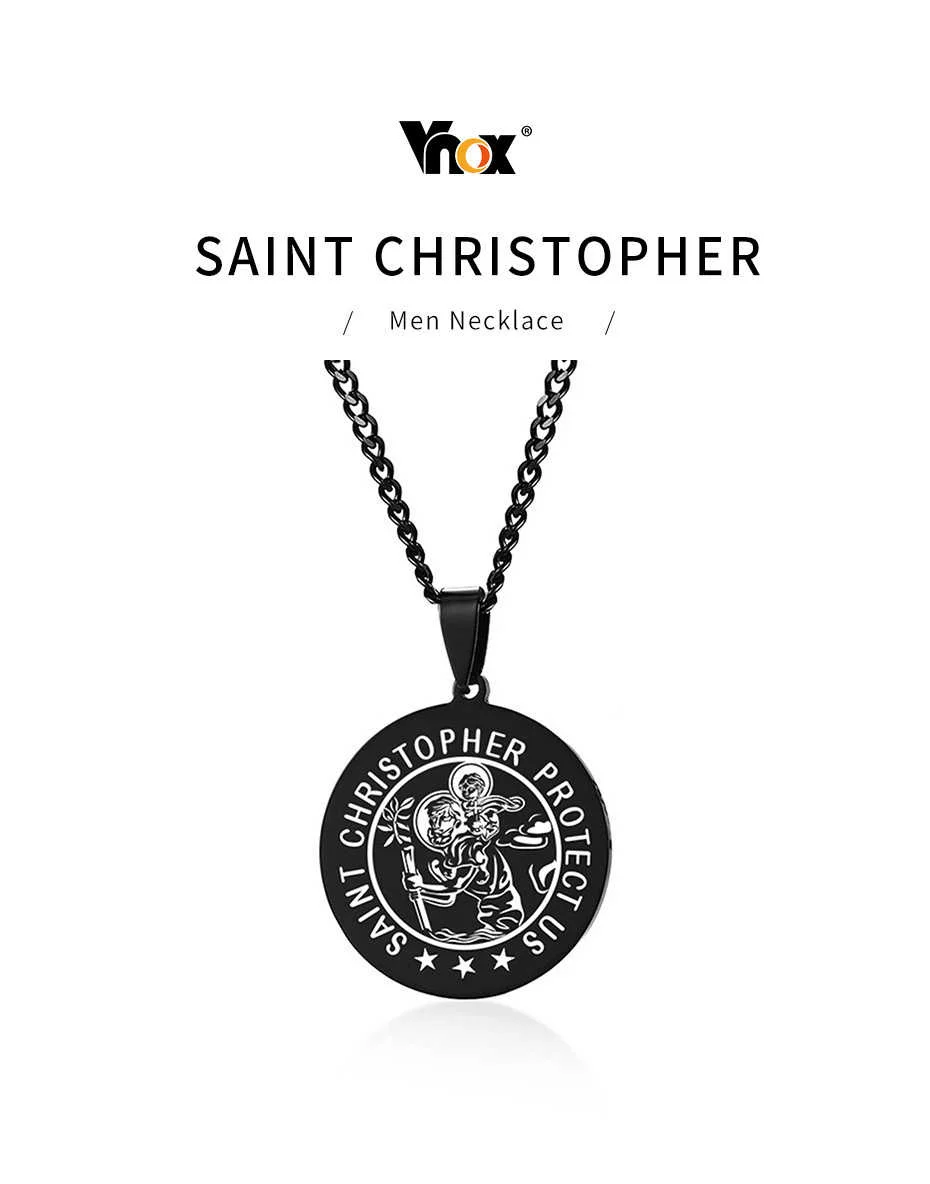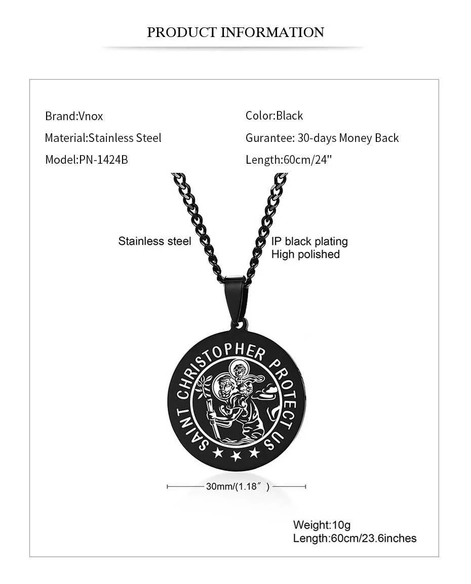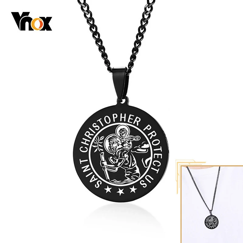 Vnox 'saint ожерелья для мужчин и женщин, черный дверные ручки из нержавеющей стали монета круглая подвеска, Христос, молитва ювелирных изделий с 24 "цепи