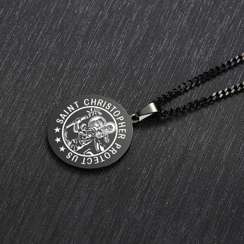 St Christopher религиозный медальон диск кулон ожерелье из нержавею...