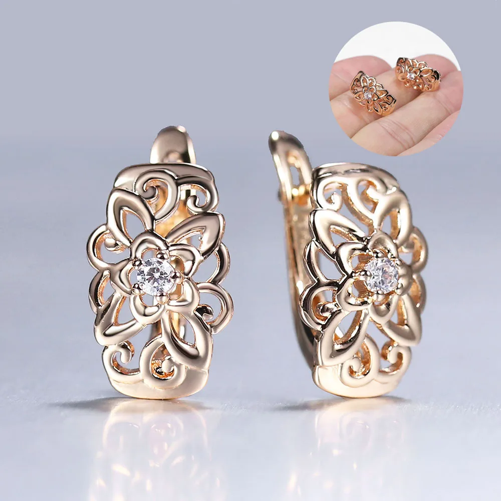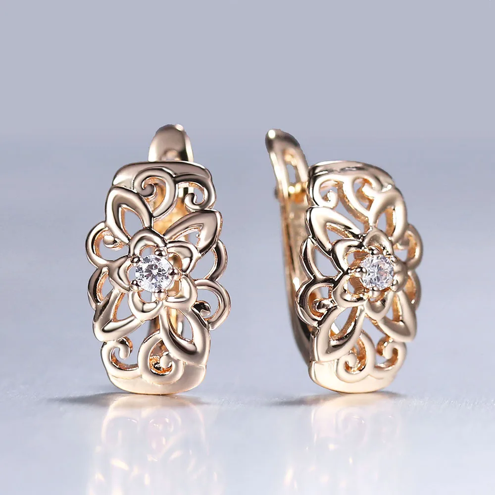 Серьги-подвески с квадратными цветами LGE329 женские, висячие серьги с фианитами, резные ювелирные украшения для ушей под розовое золото 585 пробырозовое золото